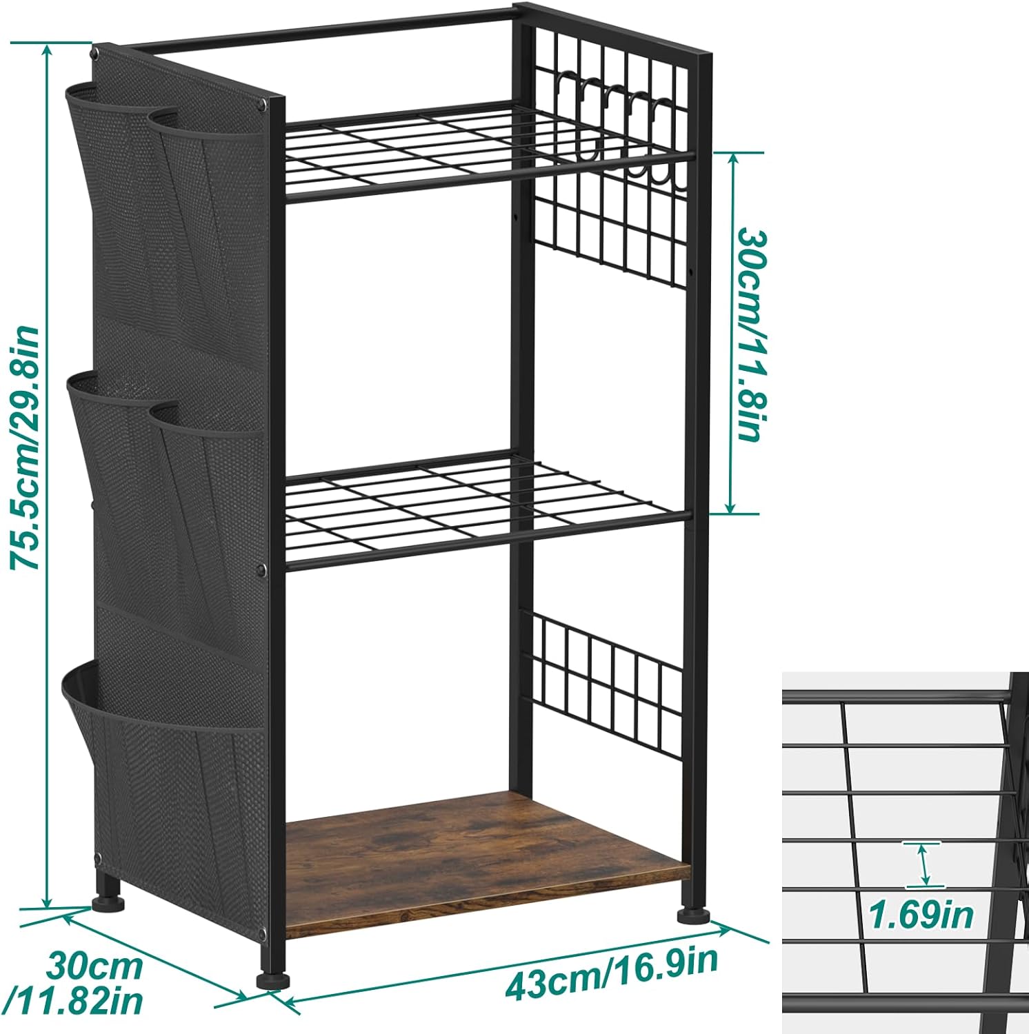 - Flexible three-layer storage shelf: The three-layer design combined with a top adjustable shelf allows for easy adaptation to different heights of gardening tools (shovels, leaf rakes to bow rakes, mops and brooms), potted plants or cleaning supplies. 5 hooks expand the hanging space, and the large-capacity side storage bag is specially designed for small items such as gloves and pruning tools, achieving three-dimensional classified storage and maximizing the use of vertical space in garages, sheds or balconies.