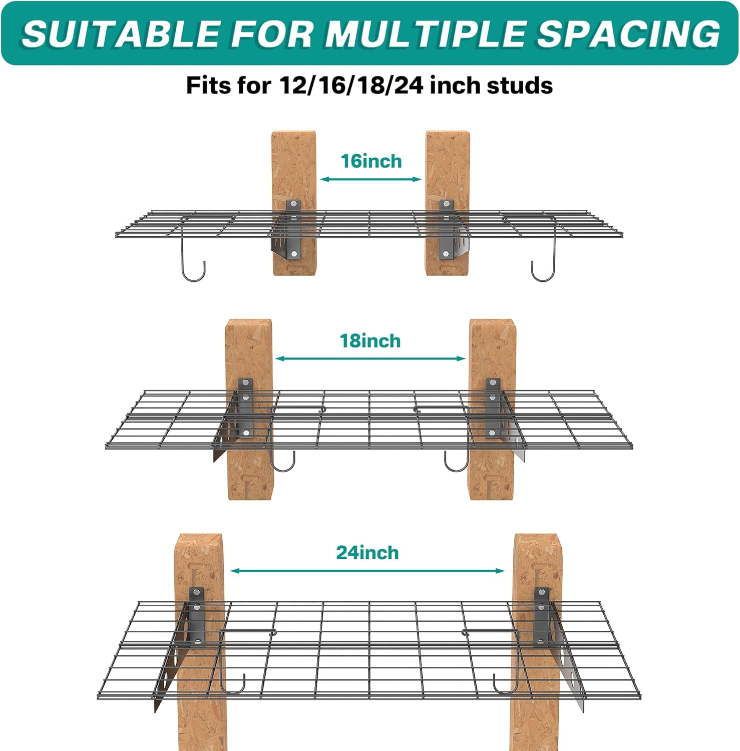 - Multifunctional Storage: Measuring 24x48 inches with a 220 lbs capacity, this wall shelves holds heavy items like tools, car accessories, and electronics. Included hooks are ideal for hanging hoes, shovels, and backpacks, meeting various storage needs