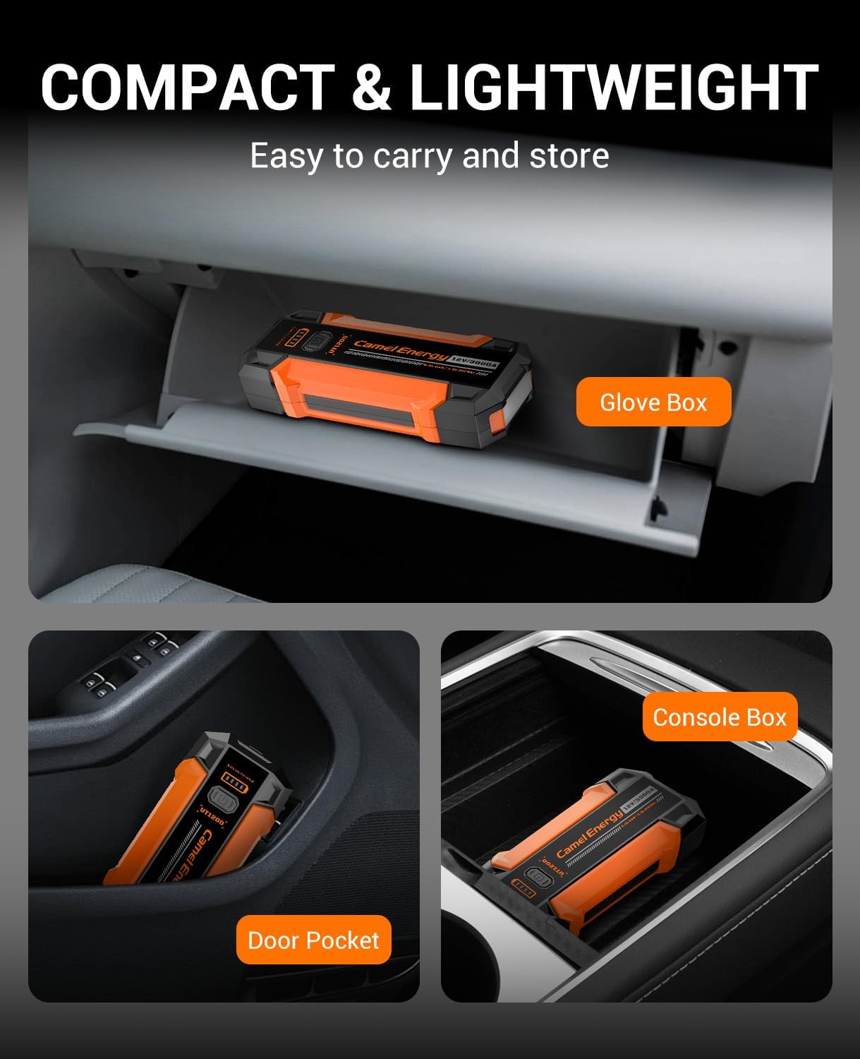 - REMARKABLE MULTI-PROTECTION: The Camelenergy battery jump starter is equipped with ten intelligent safety features designed to ensure user safety, alleviating concerns related to malfunctions such as short circuits or sparks. This device allows for confident jump-starting of vehicles. Its IP65-rated shell material protects against rain, dust, and external impacts, making it adaptable to various challenging work environments.