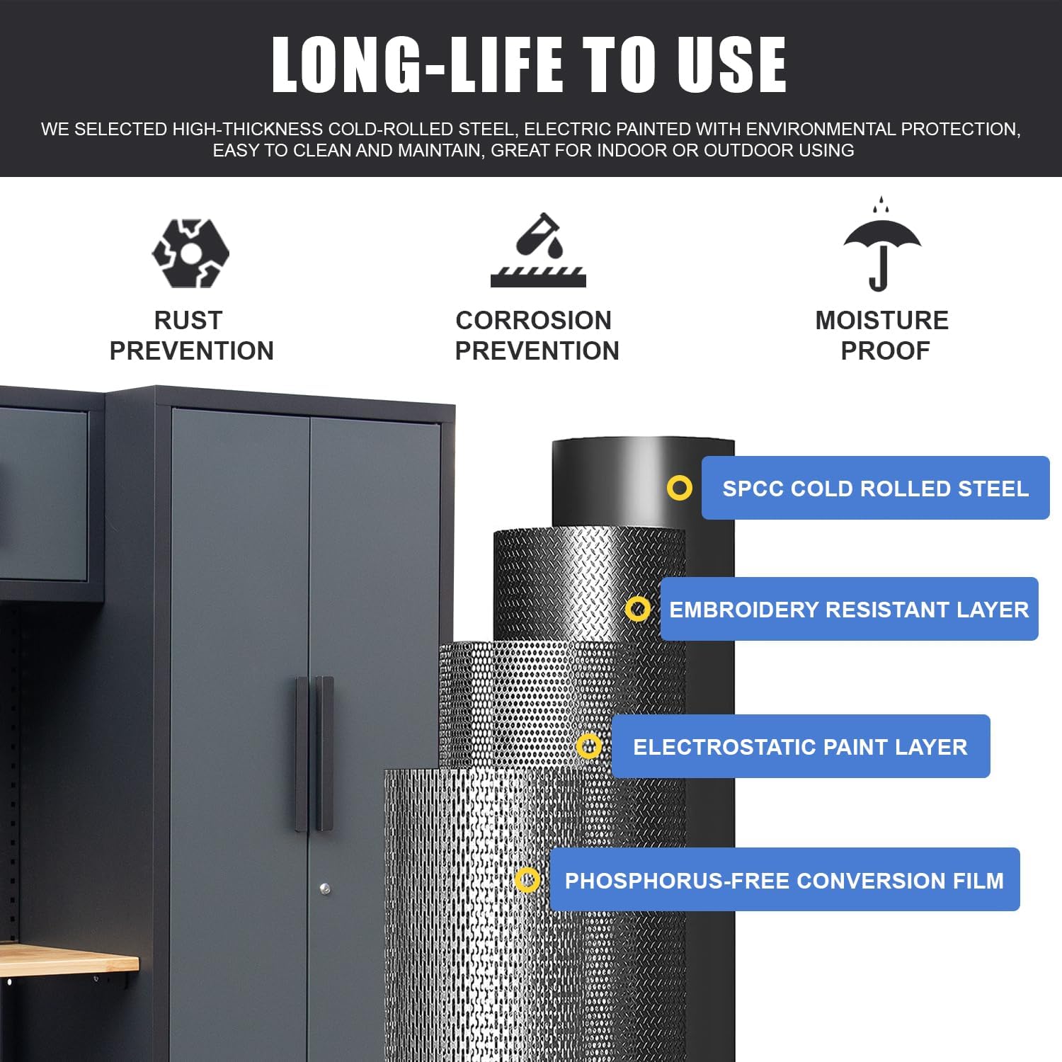 - Tool Organization: HPDMC Garage Storage Cabinet System is specifically designed for garage tool organization
