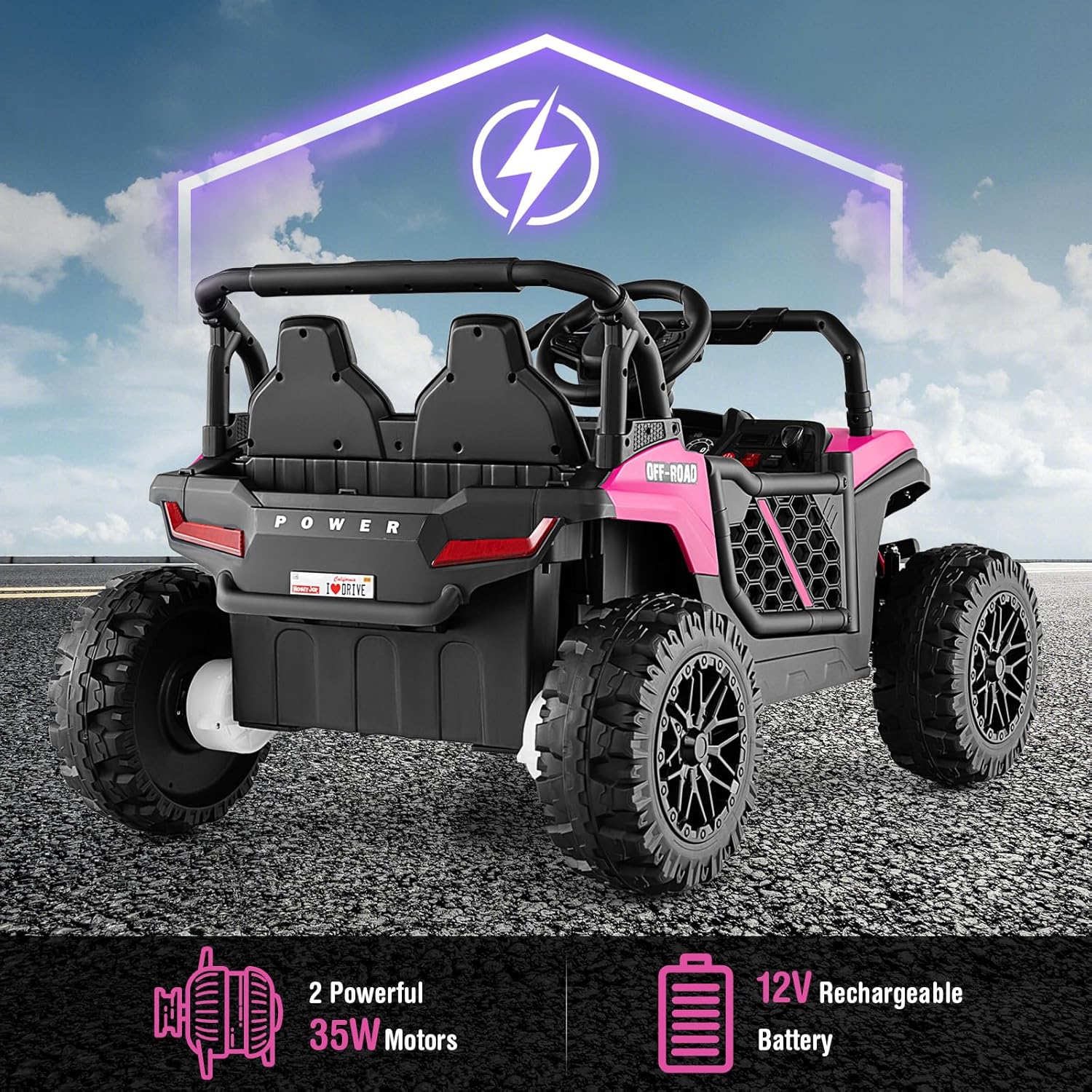 - 【Fantastic Present Choice】 This electric off-road UTV complies with ASTM and CPSIA, making it a perfect gift for boys and girls above 3 years old. Its high-performance motors and 12V battery ensure durability, encouraging children to embark on exciting and fun driving adventures.