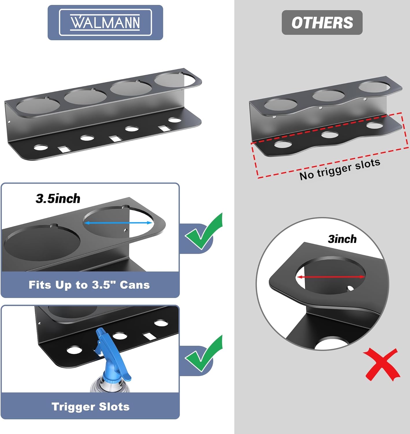 WALMANN Spray Bottle Holder Wall Mount, Metal Spray Can Storage Rack for Garage Workshop, Paint Aerosol Can Organizer, Pack of 2