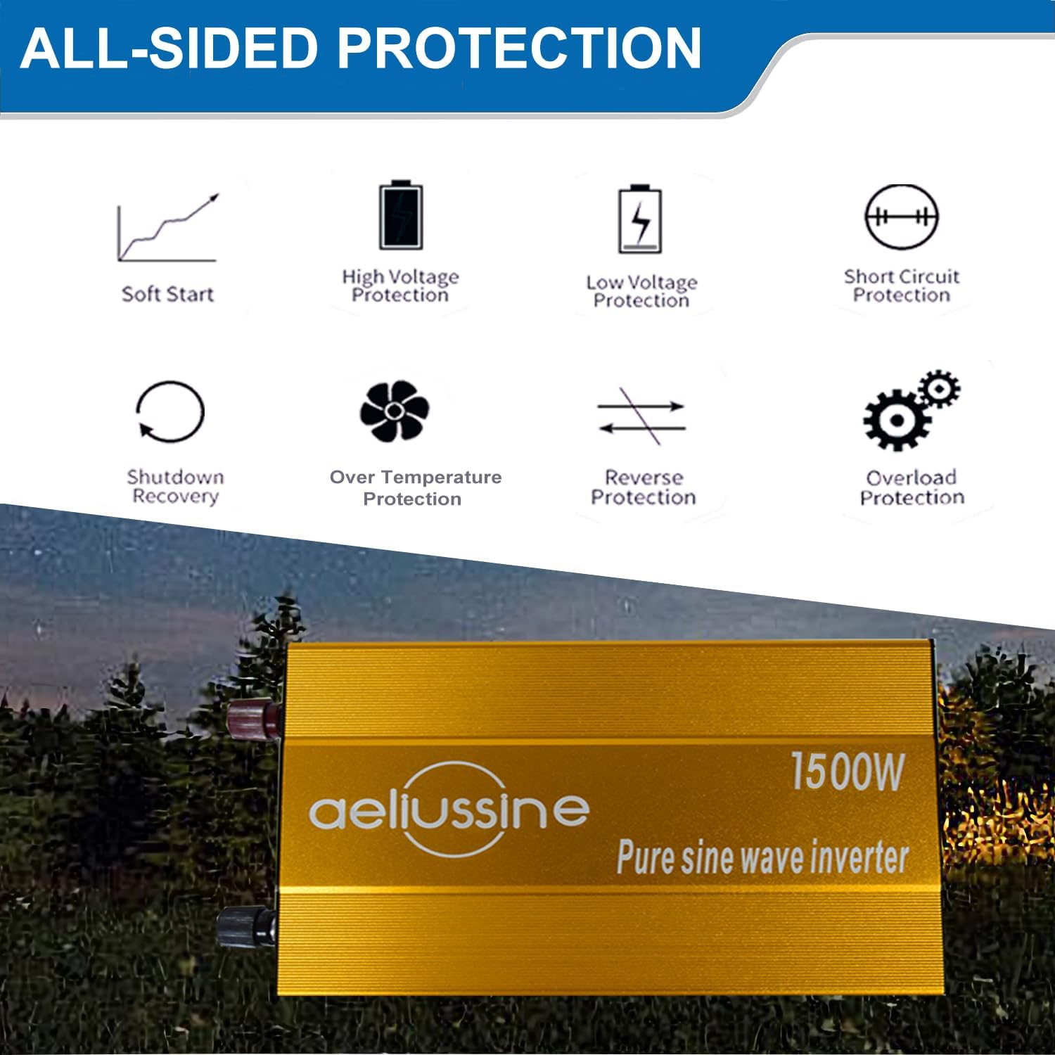 • 【Fully Safety Protections】The pure sine wave inverter has high efficiency and stable performance. It has sound protections including overload protection,over current protection, short circuit protection, battery reverse connection protection, high temperature protection, high or low battery input protection, built-in fuse protection.