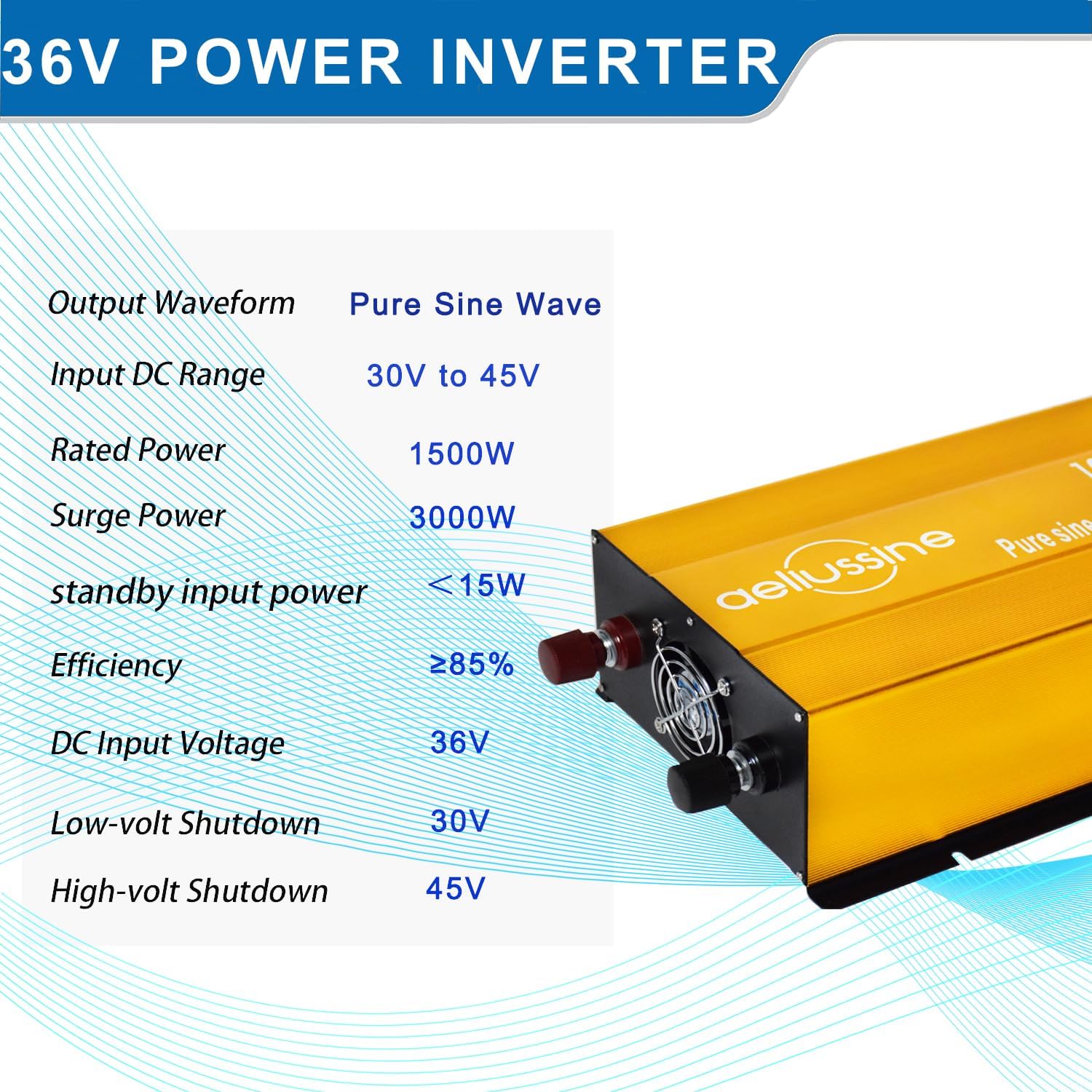 1500W Pure Sine Wave Inverter-36V DC to 110V 120V AC Power Converter with 2 AC Outlets, 36 Volt Power Inverter for Truck, Rv, Camping, Home, Emergency Power
