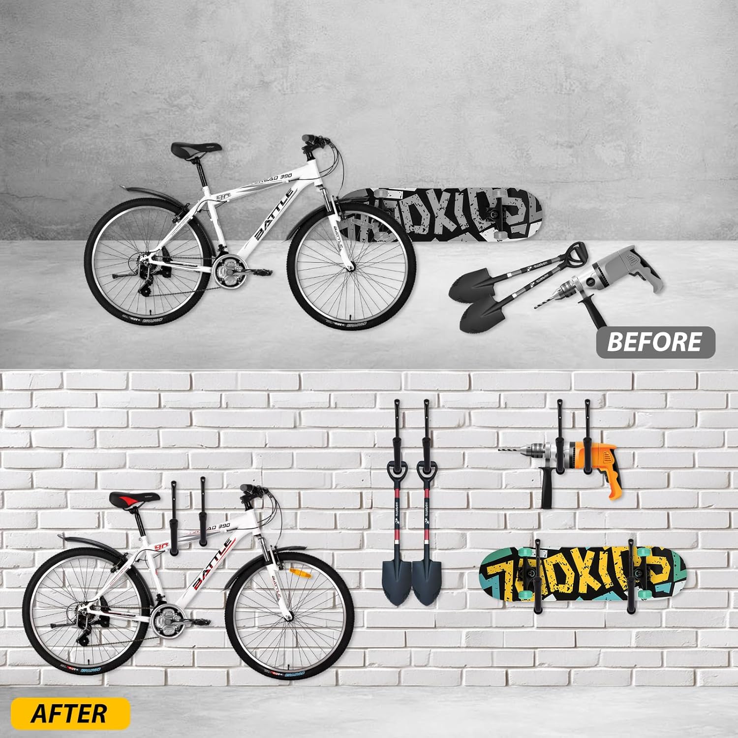 - Space Save: Suitable for garage, shop, house, or outdoor storage, 15 inch garage wall hooks mount to plasterboard, studs, and other wall types, freeing up floor space by moving the contents of the garage from the floor to the wall