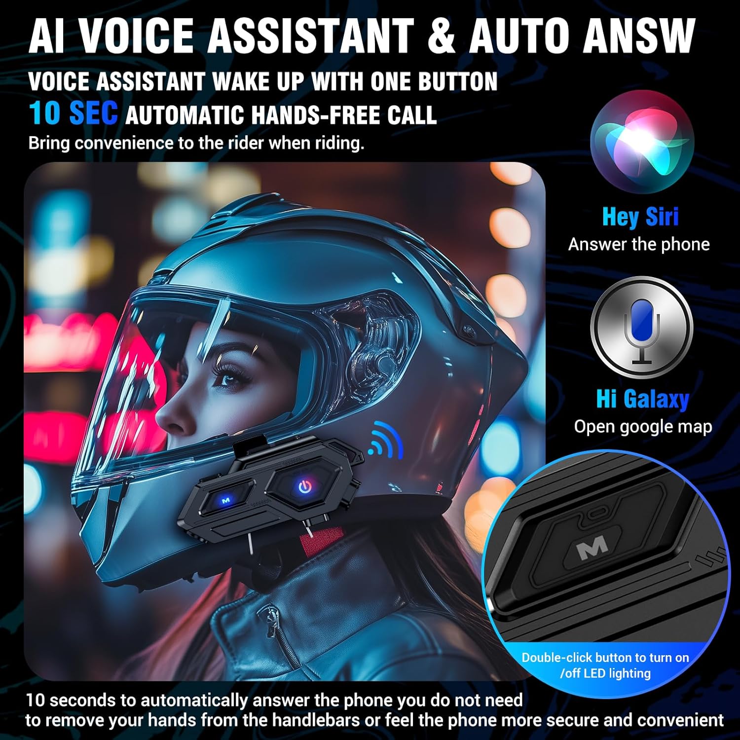 - BT5.4 and IPX6 Waterproof:Bluetooth 5.4 with greater compatibility. C8 Motorcycle Helmet Speakers IPX6 waterproof rating to help you cope with more weather conditions. Activate C8 voice assistant with a single click, making hands-free calls, controlling music playback, and accessing GPS directions effortlessly.