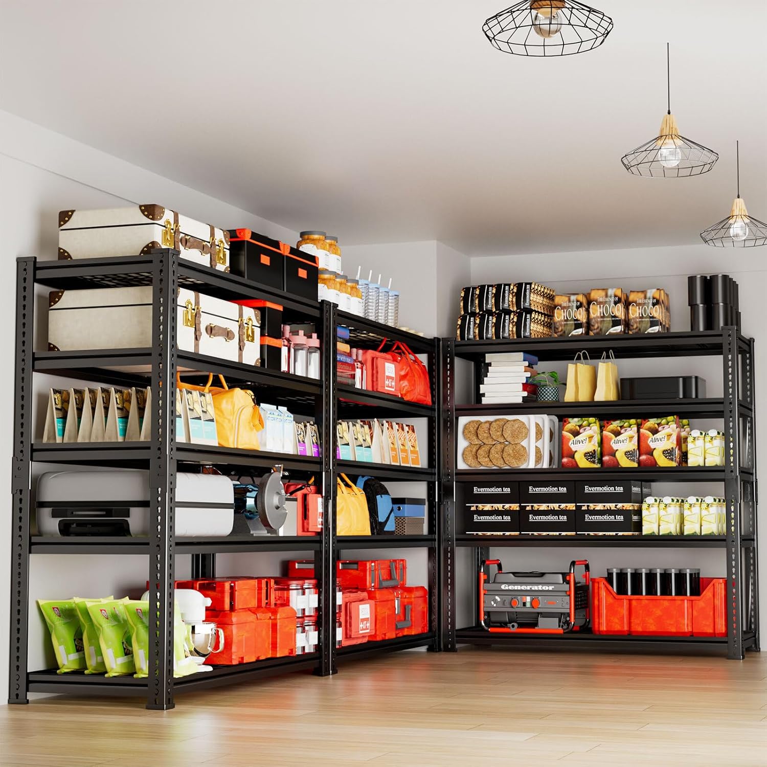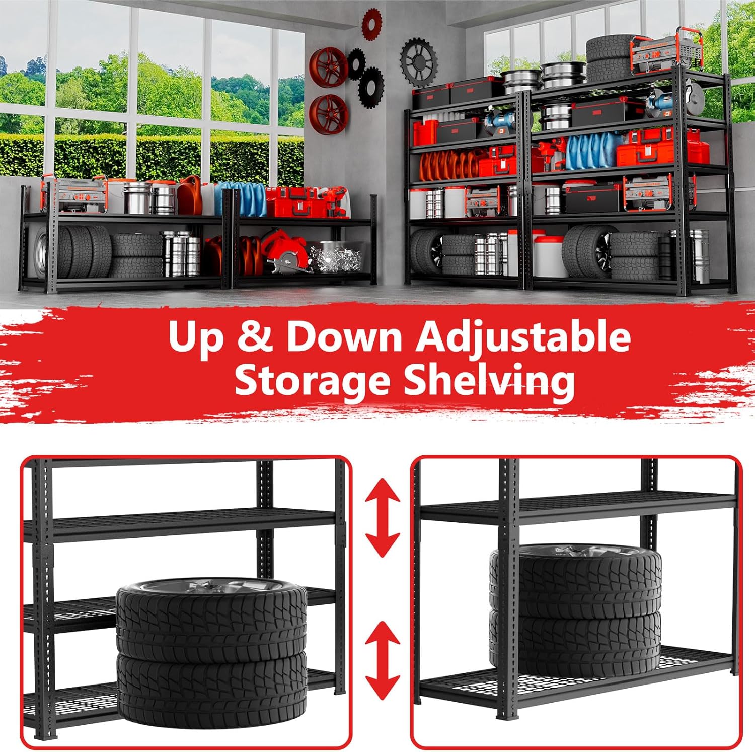 - 2400LBS Heavy Duty Capacity: MODCART's heavy-duty garage shelving is built with robust steel columns, supporting up to 480 lbs per shelf for a total of 2400 lbs. it offers reliable organization for your garage, kitchen, or laundry room
