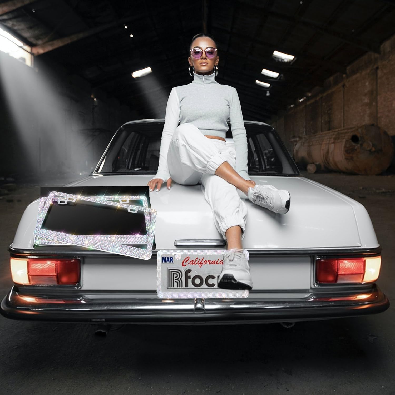 - 【Super Sparkly License Plate Frames】: Why go for boring plain license plate frames when you can go super fab with a car plate frame with actual rhinestones in it? Give your car a new cool look now! 2 Pack license plate frames for women are sure to make your car catch everyone’s eyes on the road