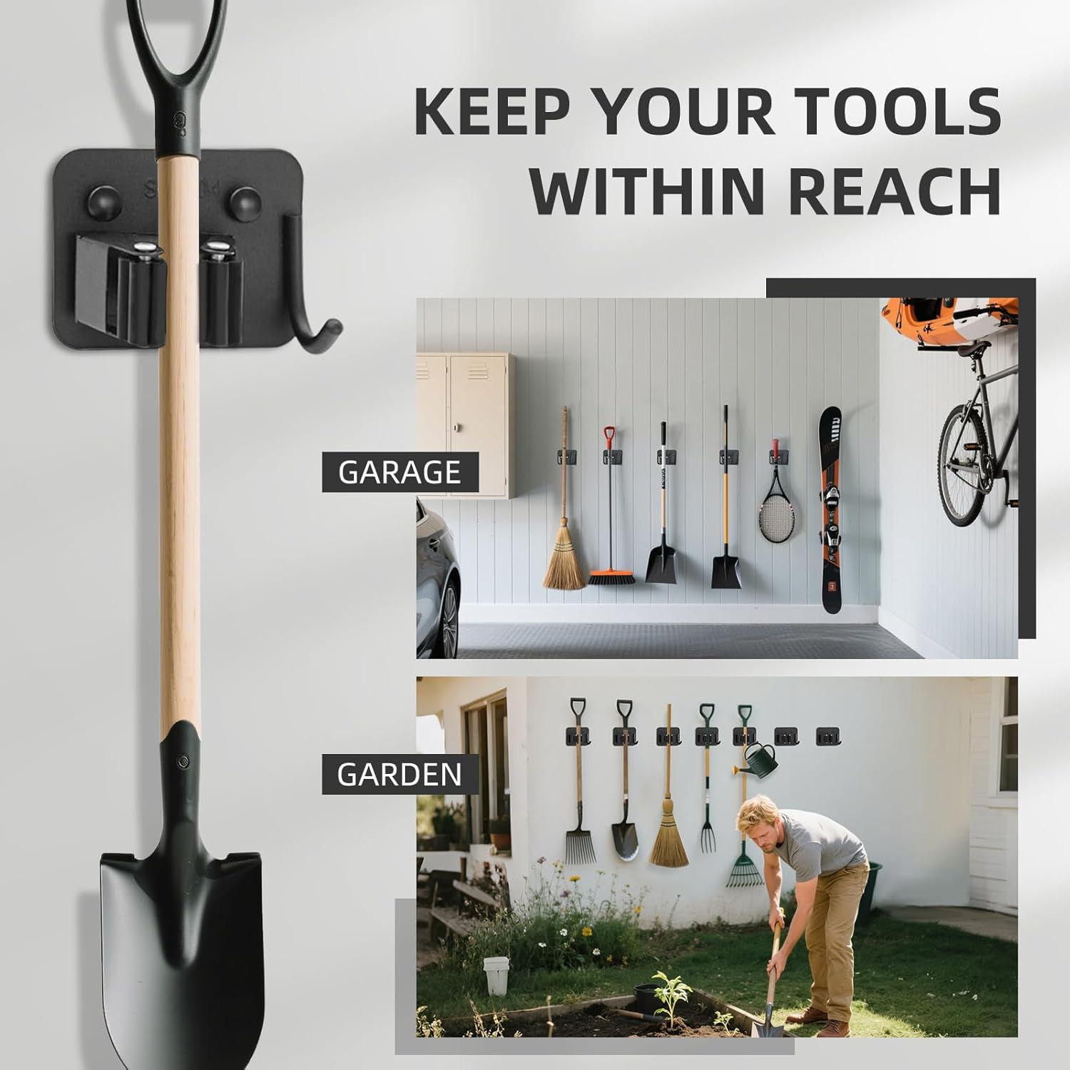 - 🧹【Keep Your Space Tidy & Orderly】Aenfaiy broom mop holders with hooks are your go-to solution for reclaiming order in your life. If you’ve been struggling with how to store your cleaning supplies, garden tools, bathroom essentials, kitchen tools, or garage equipment, look no further! With this 4-pack wall mount broom hanger to keep your tools within reach while enjoying a clean, orderly home!