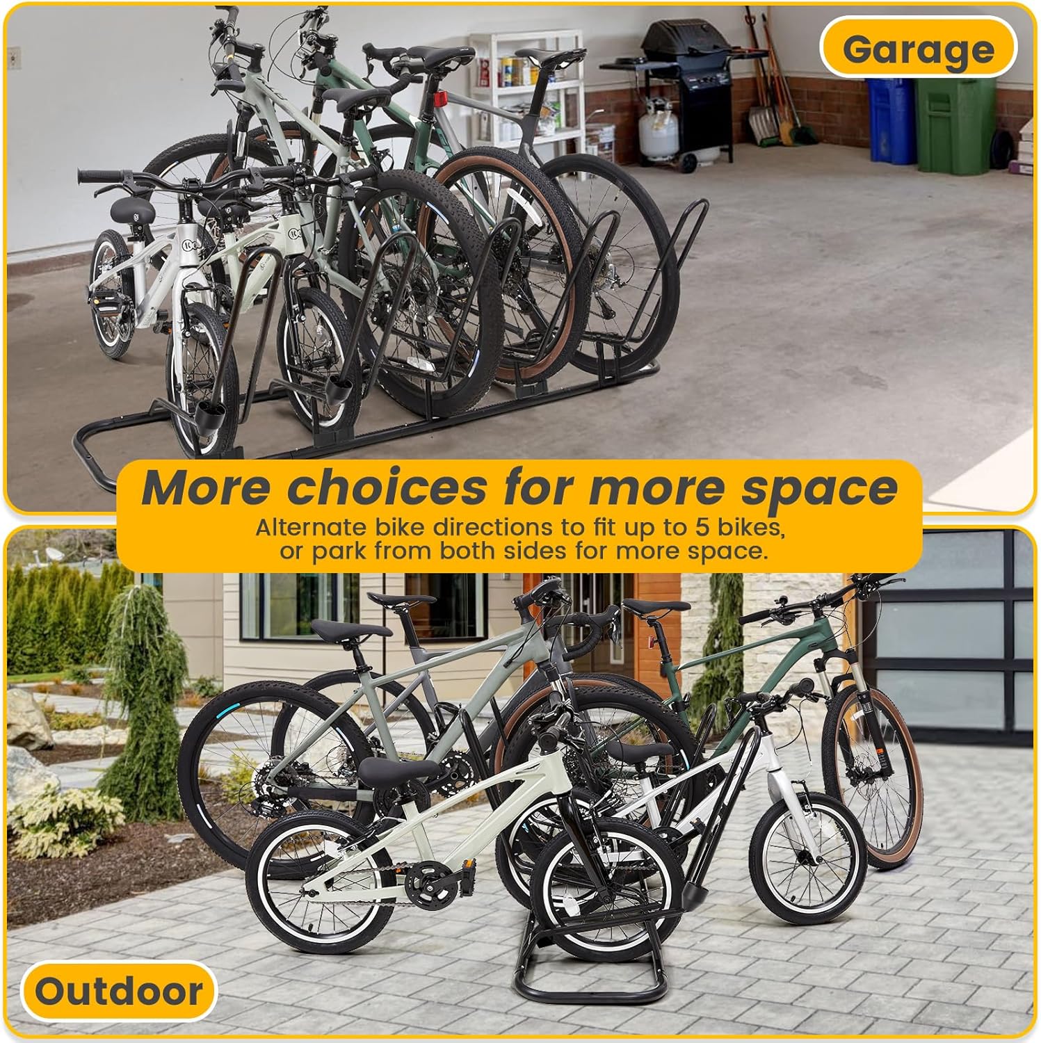 - Heavy-Duty Upgraded Steel Frame for Enhanced Stability: Built with 0.63" thick steel tubes (upgraded from 0.47") for superior strength. This floor bike rack securely holds up to 5 bikes (12"–29", max 2.4" wide) for indoor or garage storage