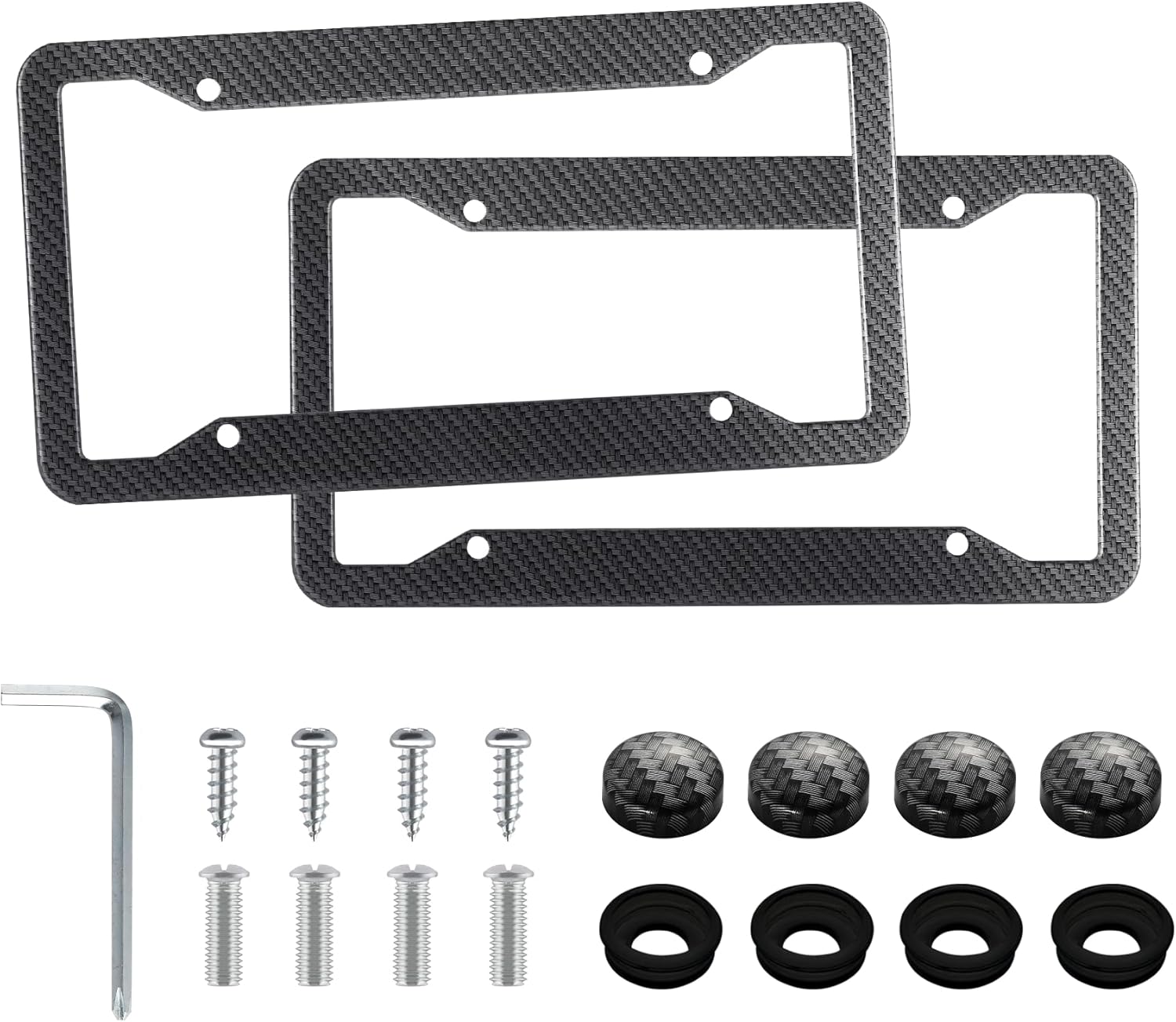 - 【Complete Installation Kit】 Includes 2 license plate frames and all the necessary accessories: 8 plastic screw caps, 8 plastic washers, 8 machine screws, 4 self-tapping screws, and 1 screwdriver. This all-in-one kit ensures easy and secure installation.
