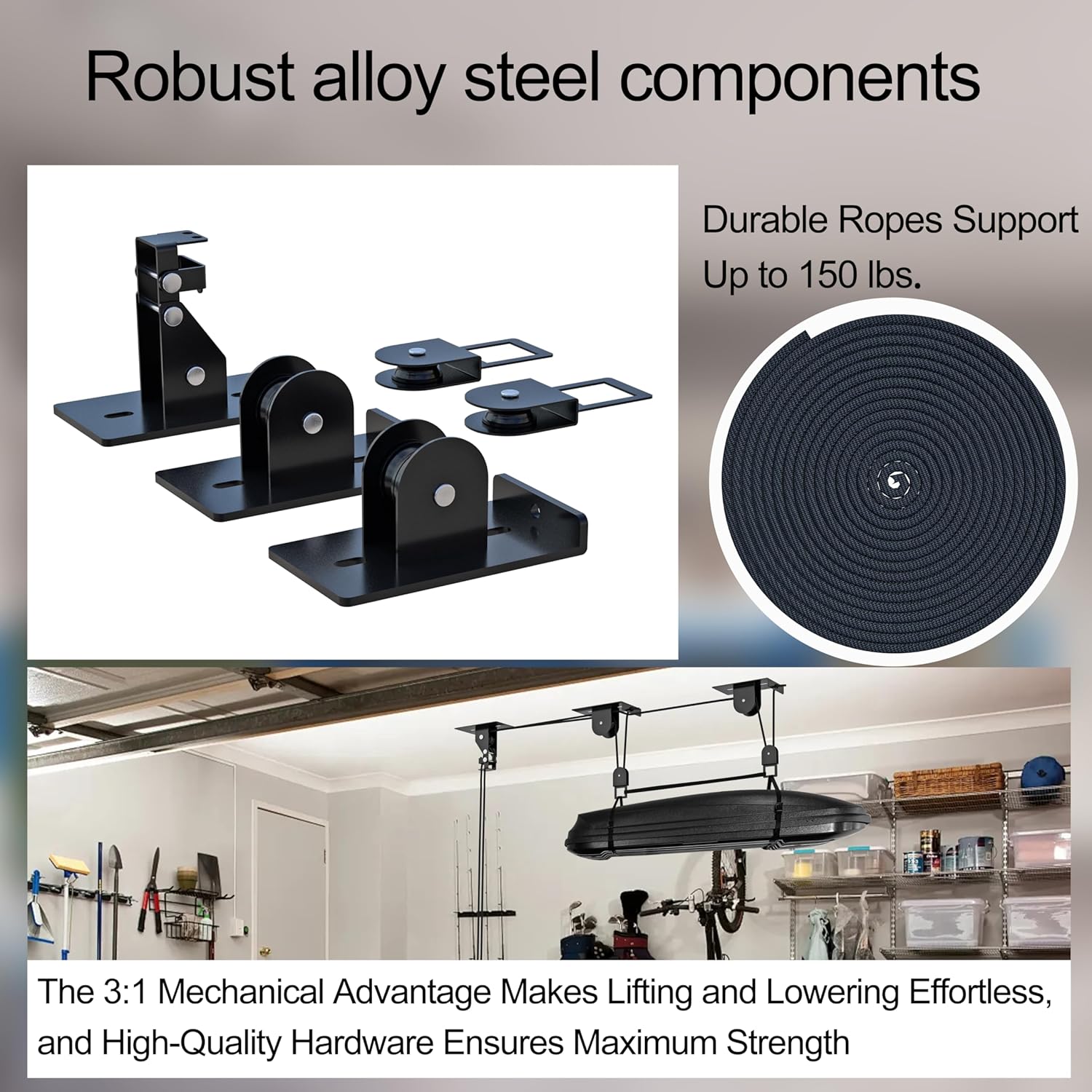 2025 Upgrade Cargo Box Garage Pulley System, Garage Ceiling Hoist Heavy-Duty Holds up to 150 lbs Capacity, Fit 10-14 Foot Ceilings, Black