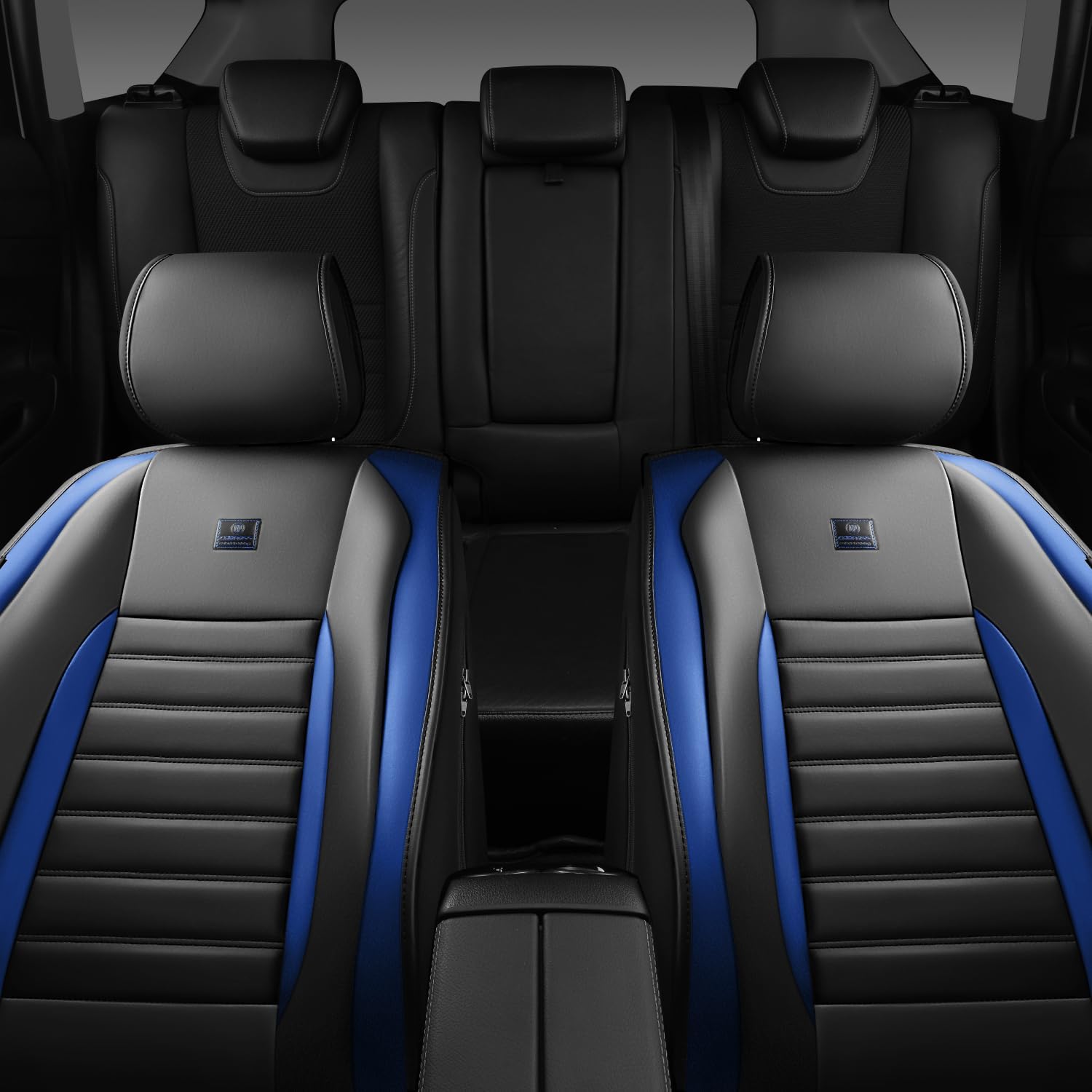CAR PASS Nappa Leather Car Seat Covers Front Seats, Luxury Seat Protector for Cars, Waterproof Anti-Slip Seat Cushion Armrest Compatible Airbag Universal for Sedan SUV Pick-up Truck Auto, Black Blue