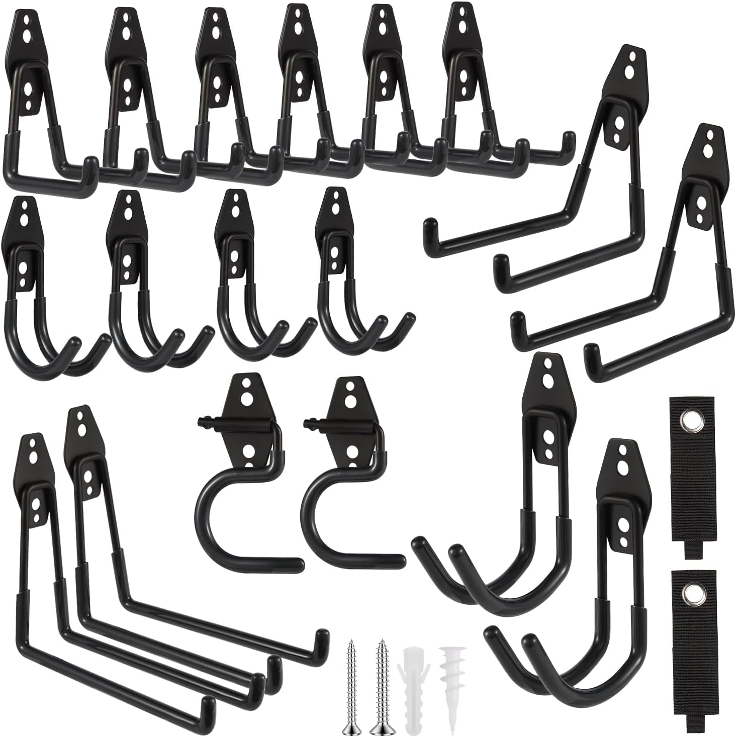 Garage Hook Heavy Duty Wall Storage Hangers, 20 Pack Garage Storage Hooks Steel Tool Black for Ladders, Ropes, Garden Tools