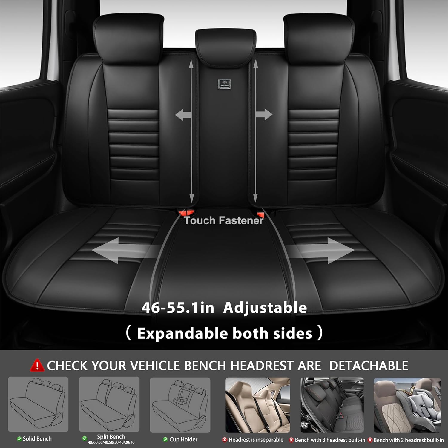 - PREMIUM LEATHER - The back rear seat cover made of high-grade leather, which no odor and Comfortable touch. It is breathable, waterproof, wear-resistant, easy to clean and suitable for all seasons. It is equipped with thick and high-quality high-density foam to create top elasticity and achieve maximum comfort during driving