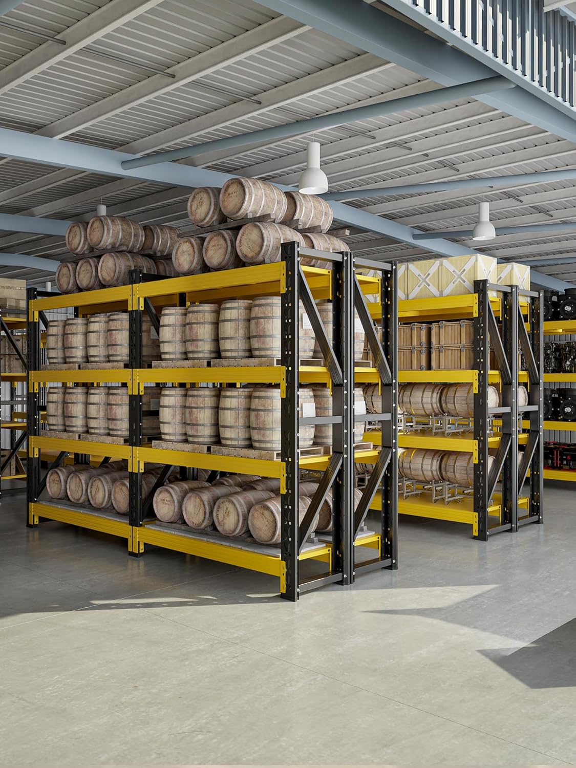 4-Tier Storage Shelves,79" H Heavy-Duty Garage Shelving Unit,Adjustable Industrial Metal Shelf System,3,400lbs Capacity,Tool Organizer for Garage,Workshop,42" W*20" D*79" H,Black&Yellow