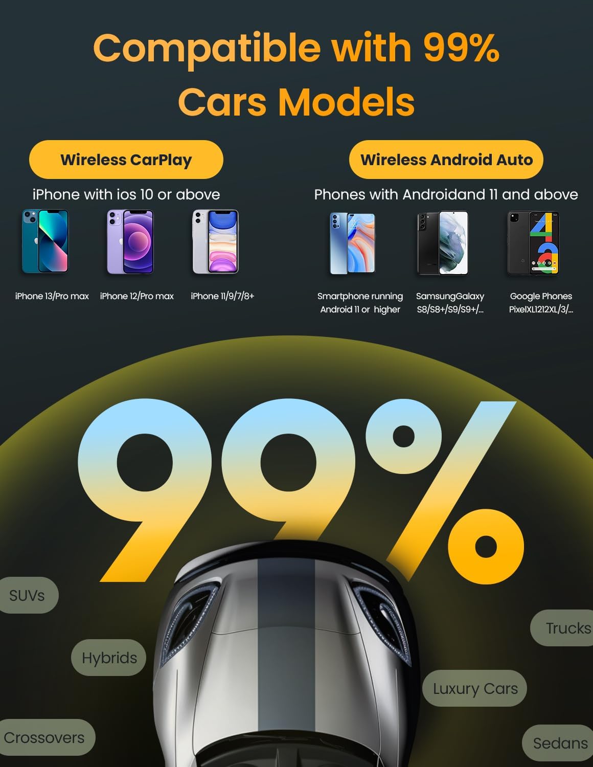 - 🛡️ Unbeatable CarPlay Experience Your ultimate car play wireless adapter with lifetime OTA updates. 1-year warranty & 24/7 support (1hr response!). Requires built-in wired CarPlay/Android Auto.