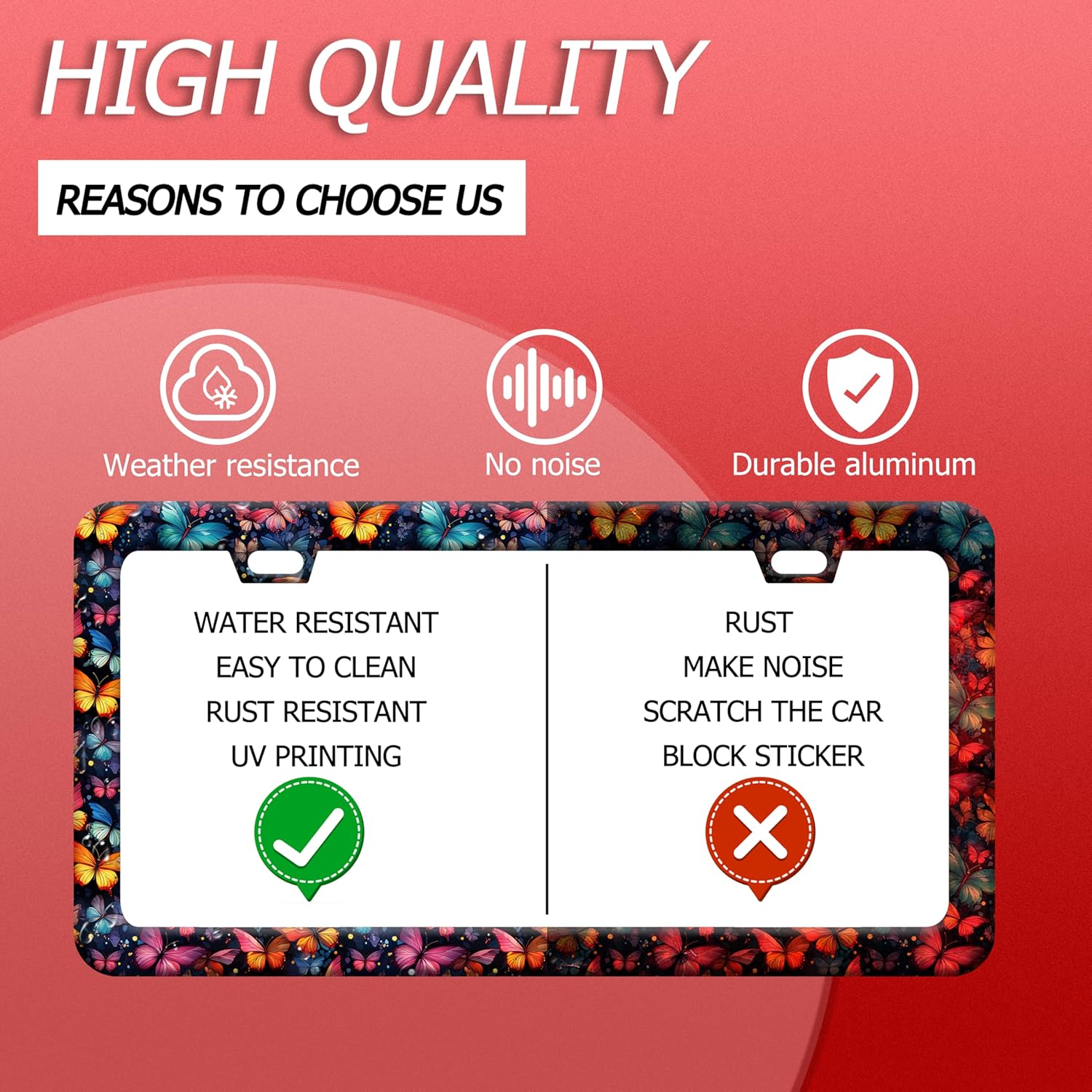 Butterfly License Plate Frame Funny Colorful License Plate Frames Stainless Steel Accessories Cars Decor with 2 Holes and Screws Fits Standard Us Ca Vehicles License Plate Holder 12.2 X 6 Inch