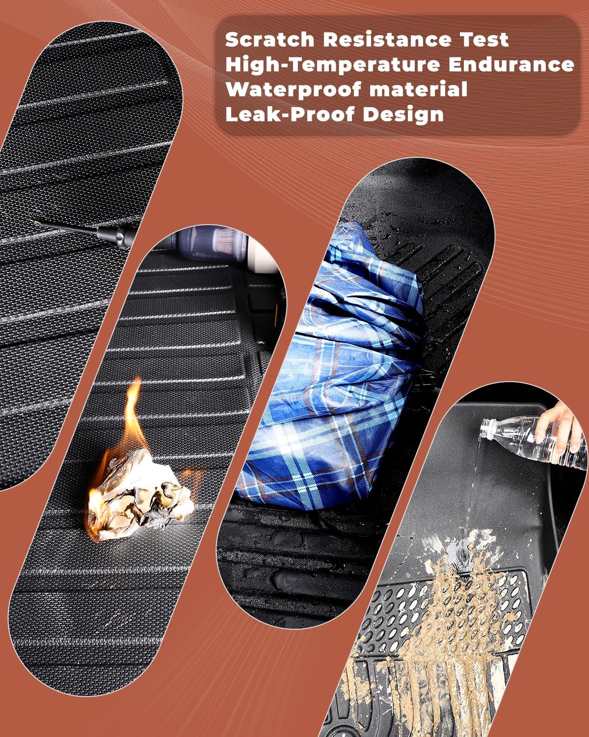 - All-Weather Protection: Featuring deep channels and raised edges, these mats effectively trap liquids, snow, mud, and dirt, keeping your car’s interior clean and protected in any weather condition—perfect for rain, snow, beach trips, or dusty roads.