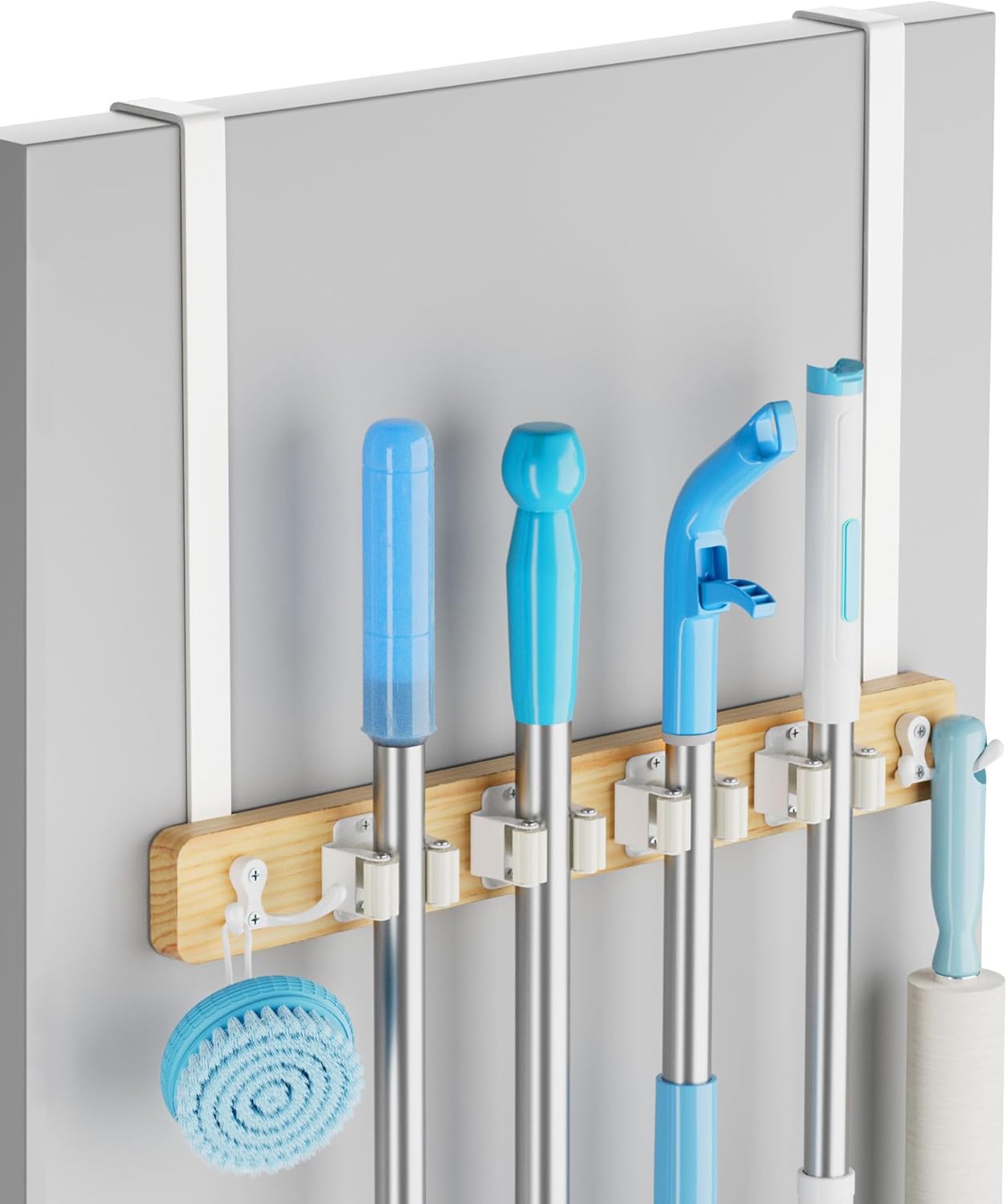 - Wide Range of Uses, Ideal Gift: Step away from traditional broom holder door mount. Simply place door broom holder organizer over the door. Our over the door broom and mop holder maximizes space without compromising style, effortlessly organizing brooms, mops, towels, and brushes in the laundry room, garage, bathroom or kitchen. With its aesthetic appeal and practicality, it's a thoughtful gift for occasions like Father's Day, Mother's Day, or for husband, wife and grandparents