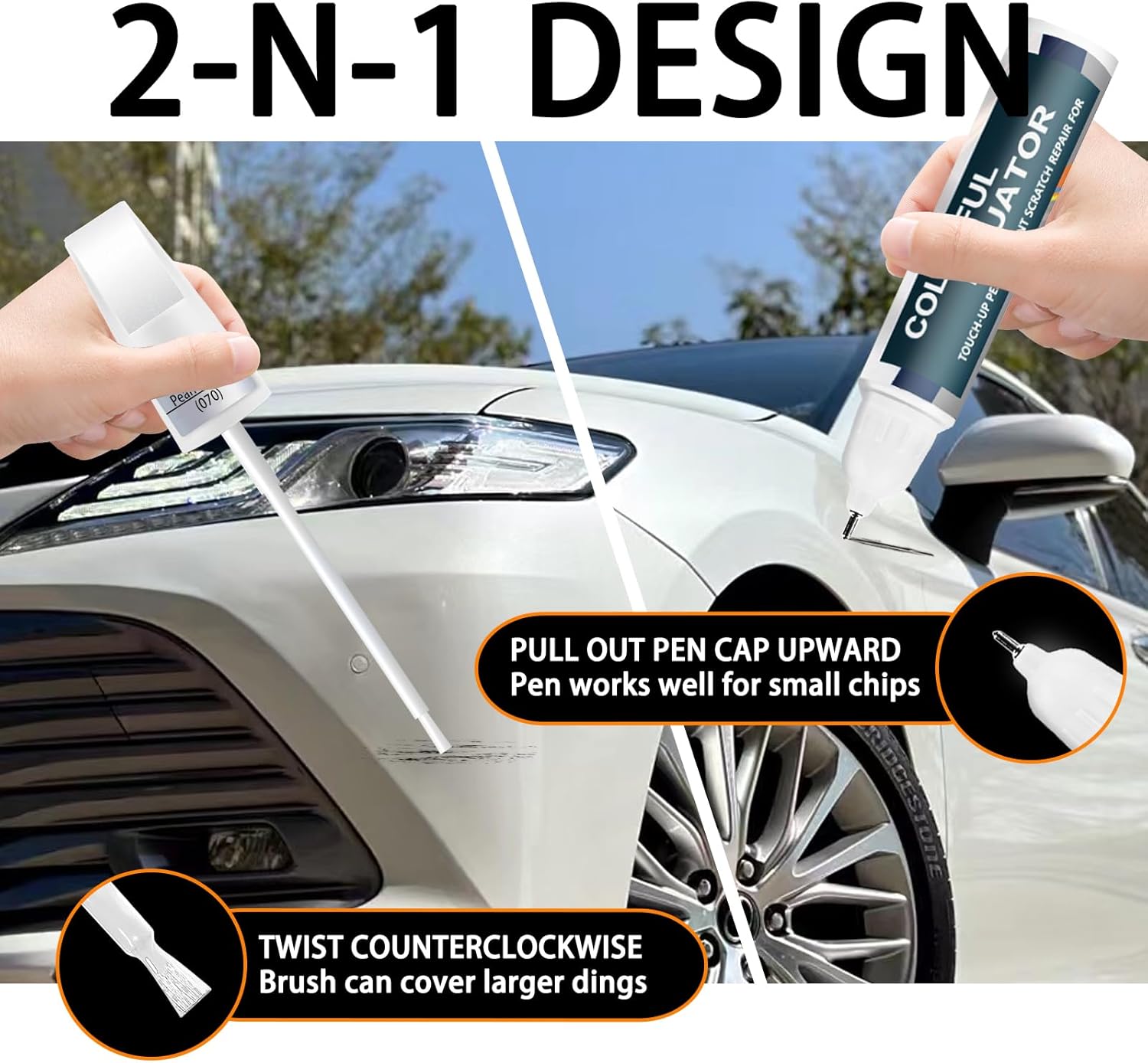 - ăRepair scratches quickly and simplyăThis car scratch repair paint has strong adhesion, anti-rust, and waterproof properties that protect your car's surface from further damage. With a 2-in-1 uses design, each bottle of car paint comes with a pen pin and brush, ensuring a hassle-free application