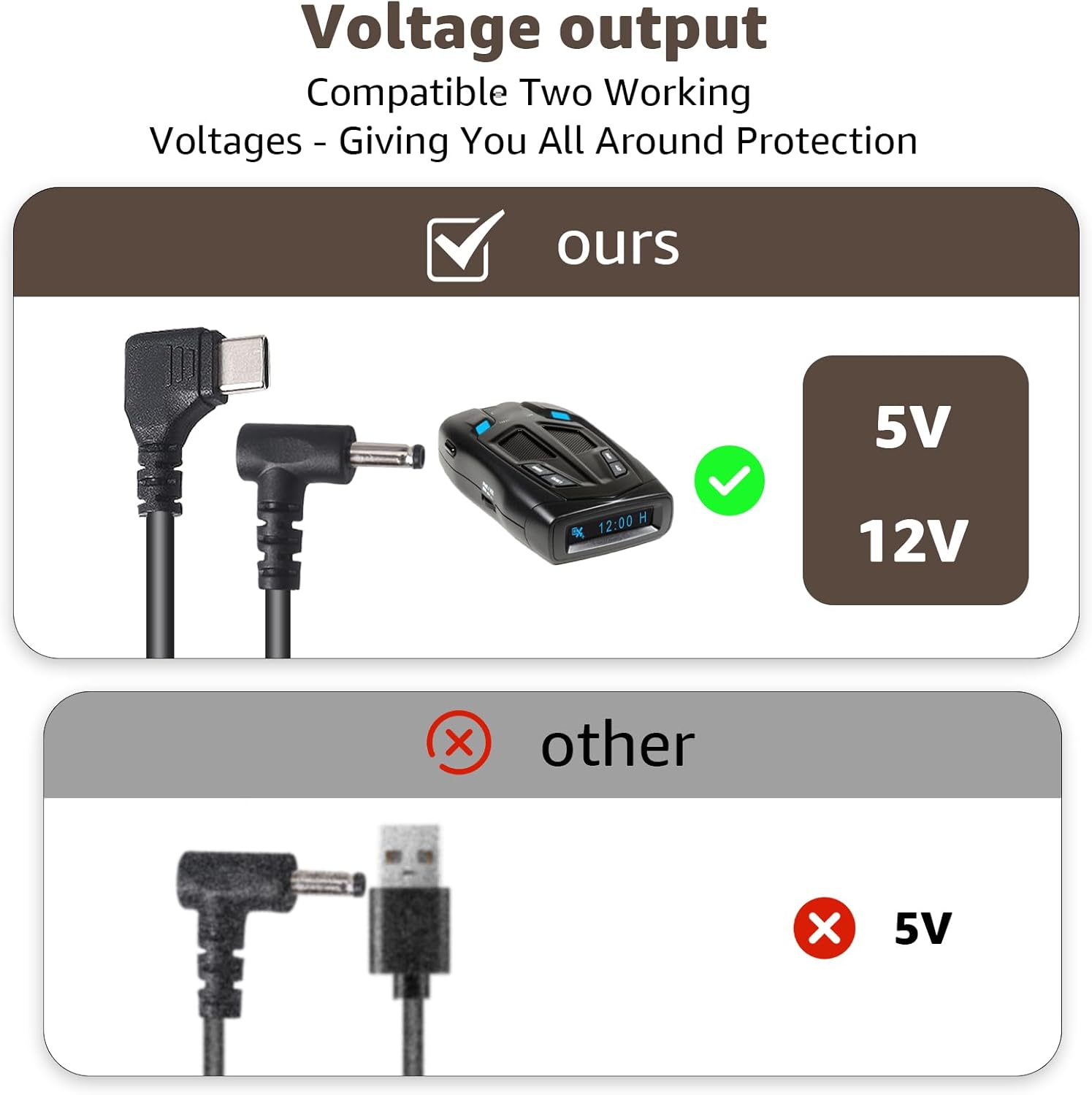 USB-C to DC3.5 Power Cable for Radar Detectors, 8.2FT 5V-12V Type C Power Cord Compatible with Cobra RAD 480i, 350, 380, Uniden DFR1,3,5 Series, Whistler, & Radenso Radar Detectors