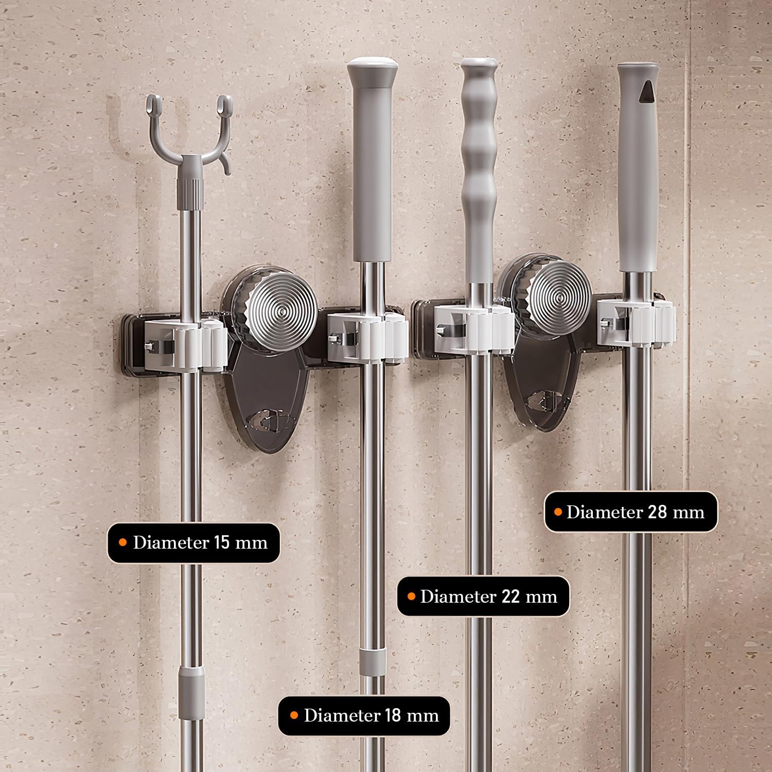 - Anti-slip design: anti-slip silicone roller, wrapped and clamped to ensure that brooms and mops will not fall off, easy to take and put, including wet mops, dirty rakes, vacuum cleaners and other hardware tools