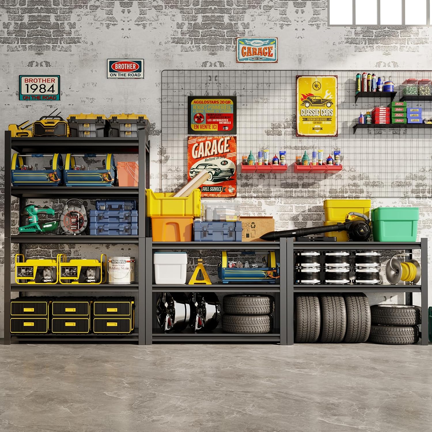 - ă1600LBS Heavy Duty Garage ShelvingăEngineered to support up to 1600 lbs, this industrial-strength heavy duty matel shelving is perfect for garages, warehouses, offices, and home storage. Its robust construction allows you to store heavy tools, equipment, and bulk items with confidence.