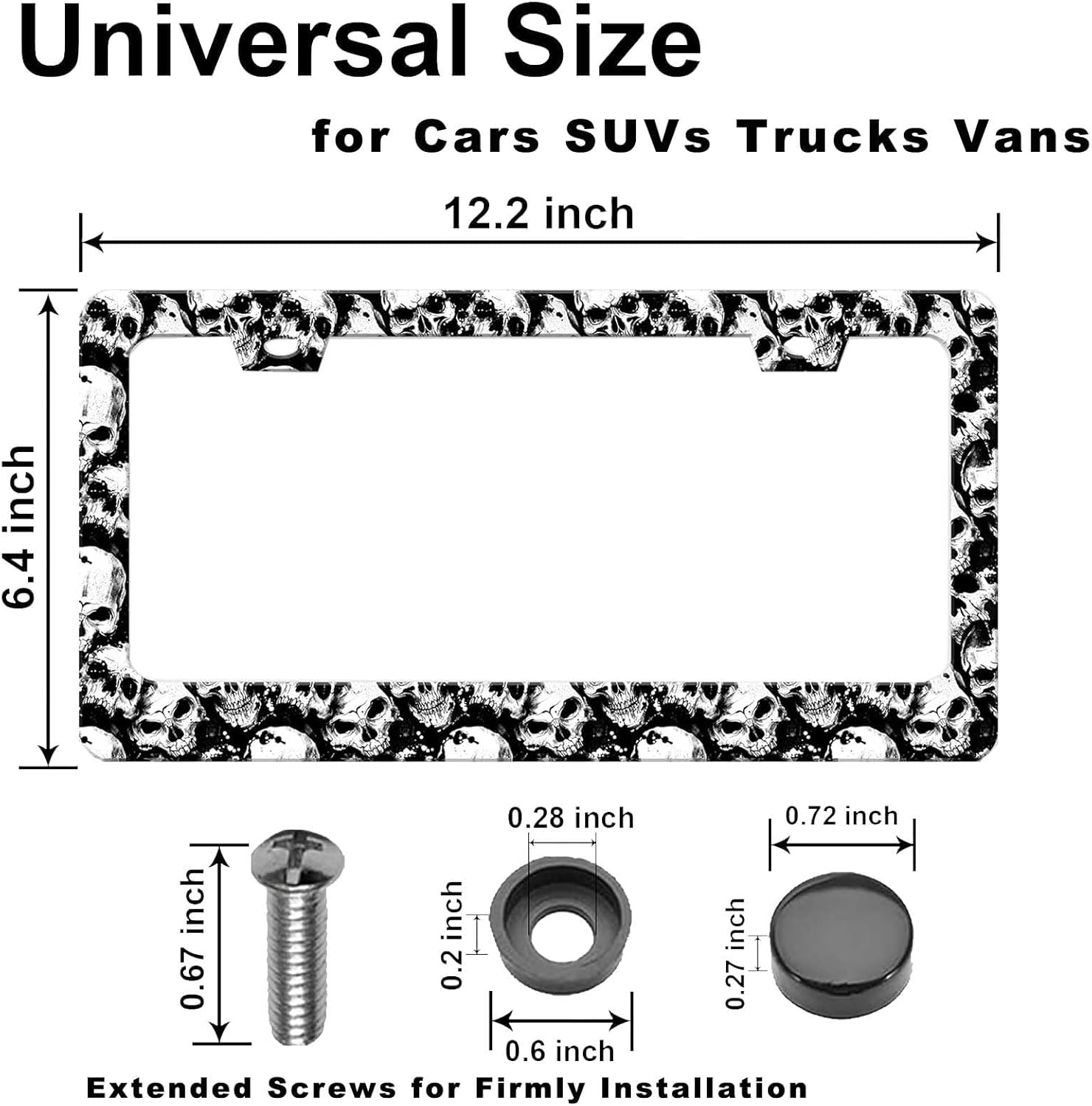 - UNIVERSAL Fits ALL US Vehicles – The license plate frames skulls Universal Design Works with Any License Plate Size. Fits Cars Sedans, SUVs & Trucks.