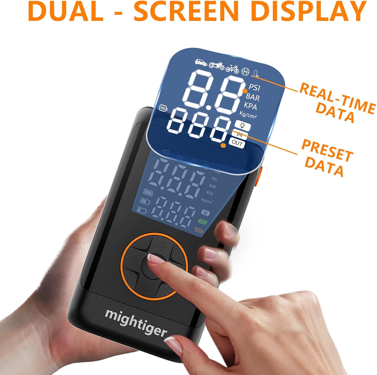 - Unique Feature:Quick-deflation valve & PSI auto-memory function.