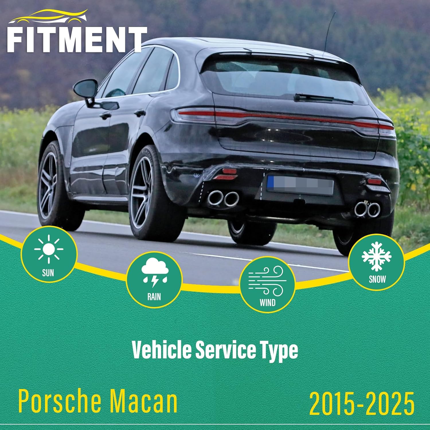 - [FITMENT]: Replacement for 2015 2016 2017 2018 2019 2020 2021 2022 2023 2024 2025 Porsche Macan 24inch + 20inch front with 15inch rear windshield wiper blades.