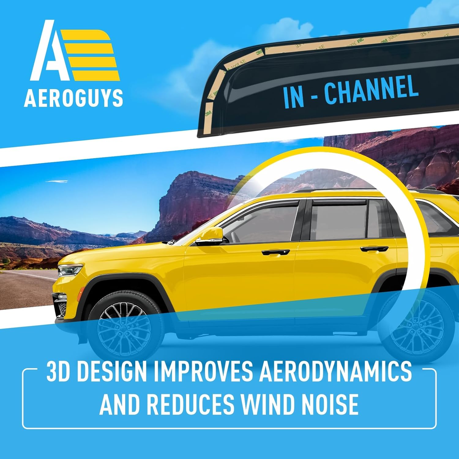 - No Tools Needed, Quick and Easy Assembly β These rain guards are very easy to fit. IN-CHANNEL INSTALLATION provides perfect fit for your SUV. Just slip it onto your SUVβs window and your job is done within minutes. There is no drilling or no tools required. Be sure that AEROGUYS window deflectors are water resistant, sun protective and will not bend, break or crack regardless of the weather conditions.