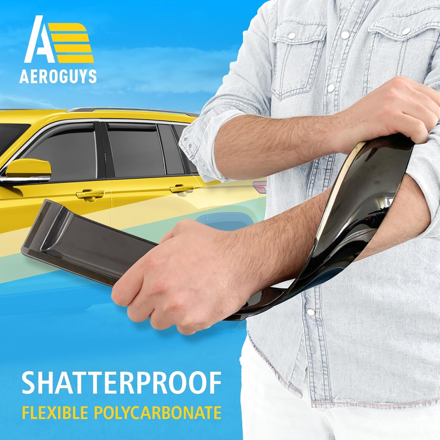 - Incredibly Durable AEROGUYS Auto Window Deflectors β They are made with strong and tough polycarbonate which is clear and scratch-resistant. They also provide UV protection making your ride more comfortable under all weather conditions.