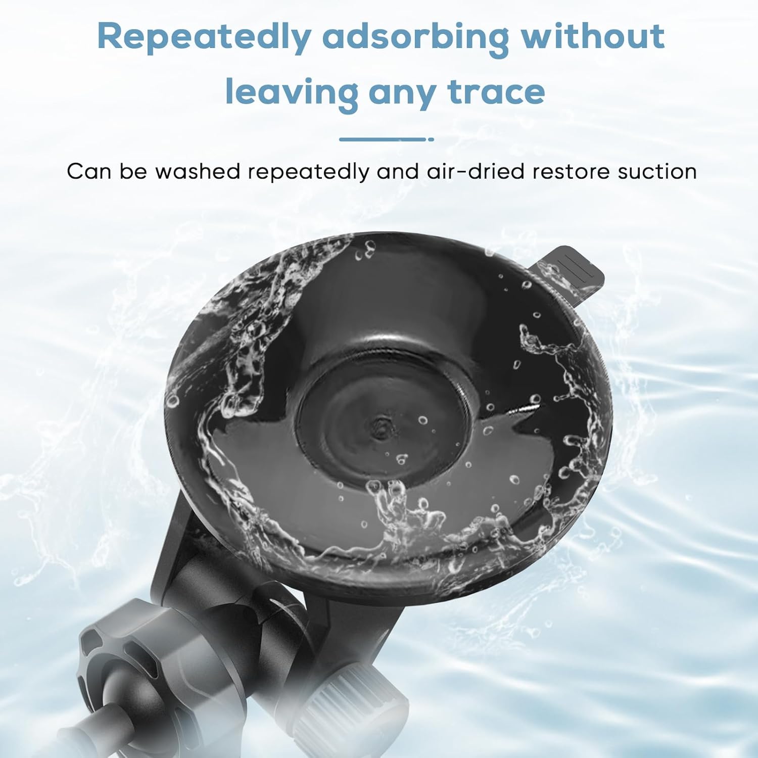 - ONE-PRESS WINDSHIELD SUCTION MOUNT :Upgraded windshield suction cup bracket with vacuum suction cup structure, capable of quick suction with a single press, and can be disassembled without damaging the glass.