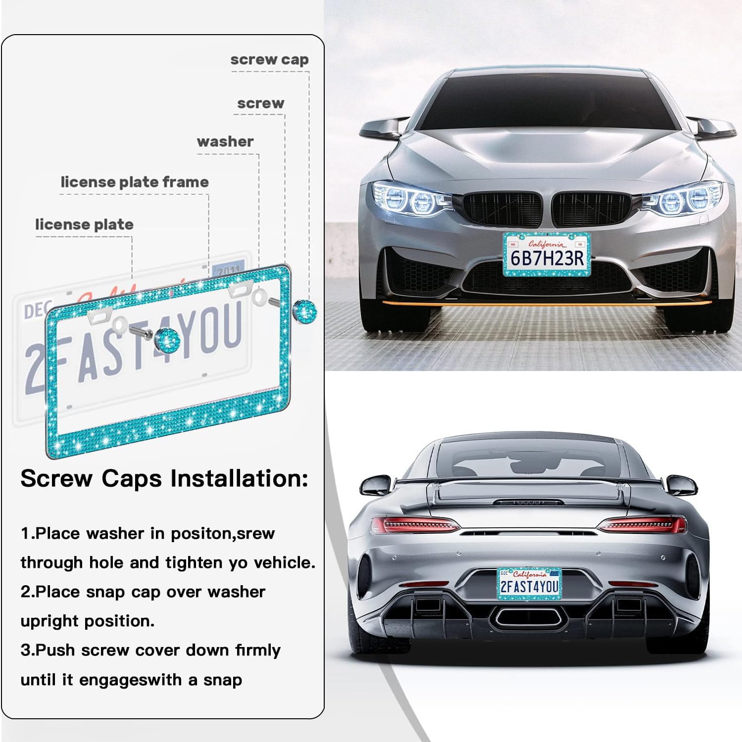 - 【Super Sparkly License Plate Frames】: Why go for boring plain license plate frames when you can go super fab with a car plate frame with actual rhinestones in it? Give your car a new cool look now! 2 Pack license plate frames for women are sure to make your car catch everyone’s eyes on the road