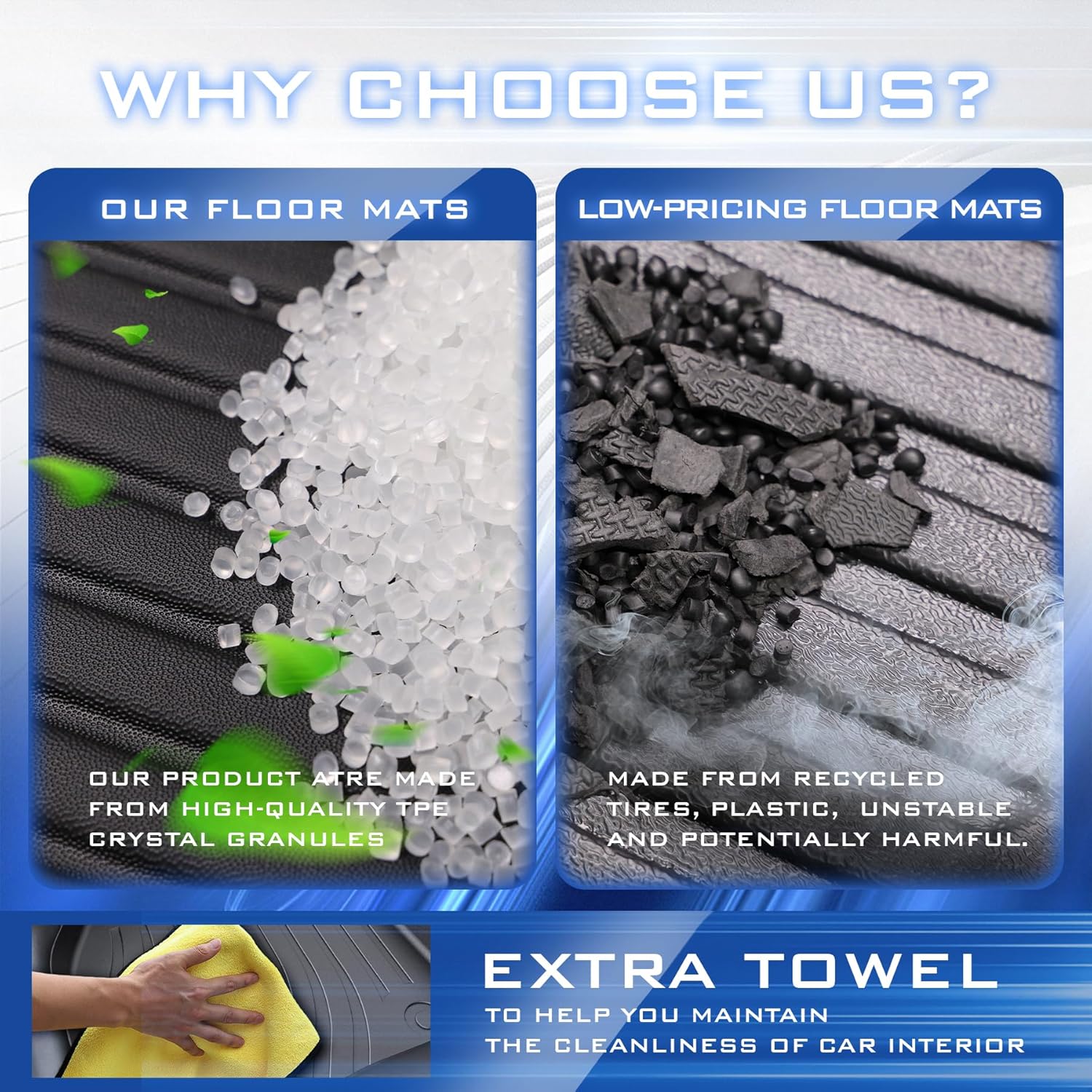 - ăEasy To Install & CleanăThese floor liners are easy to install.There is no need to cut the car floor mats,no tools required,precise fit,just align and install.Before installing car floor mats,make sure the inside of your vehicle is clean and tidy.Our automobile floor mats are easy to clean,won't shed,and won't accumulate stains.Simply shake off dirt from the textured non-slip surface or spray water with a hose.You can also wipe directly with a damp towel or remove the floor mats and wash them with water and dry them to restore them to new condition