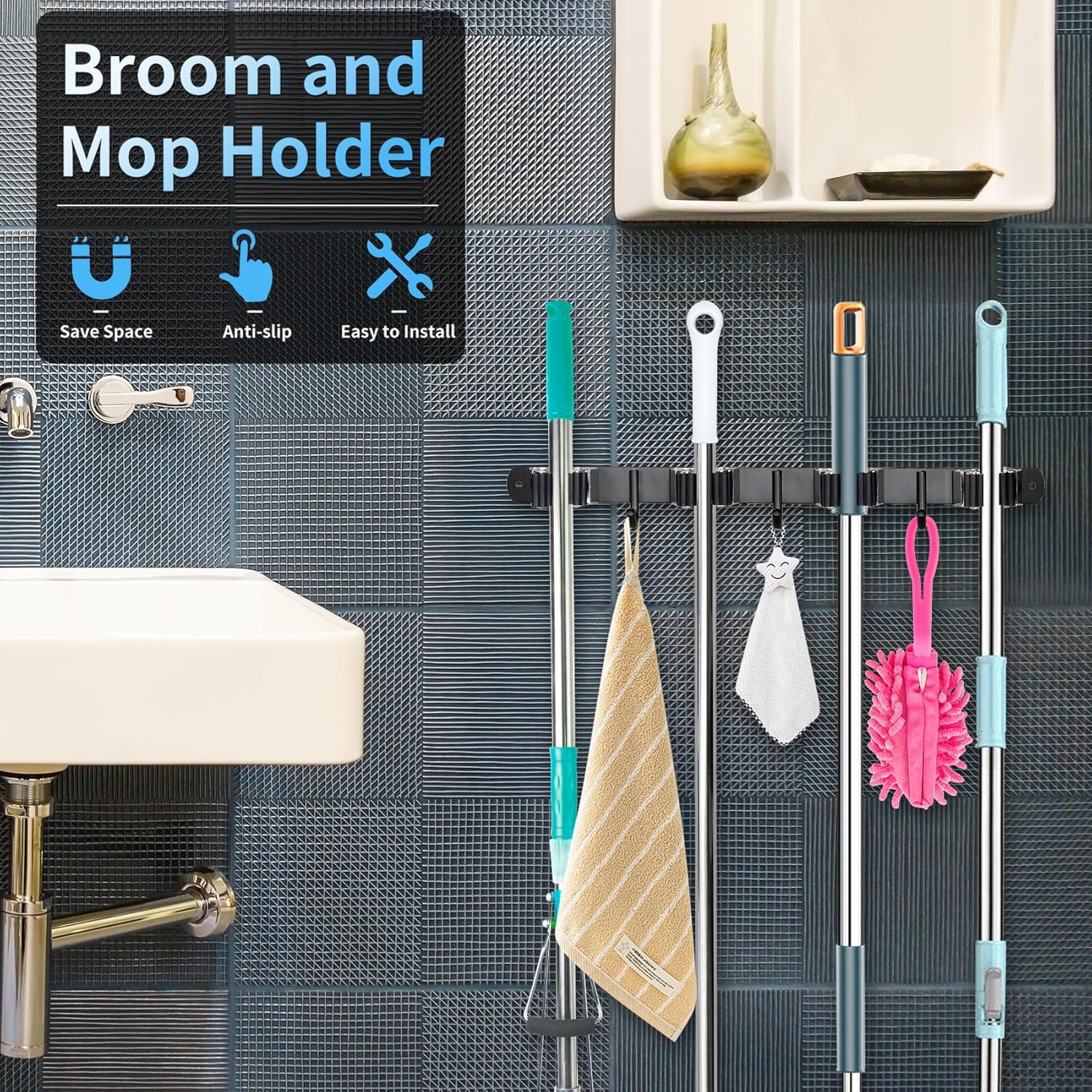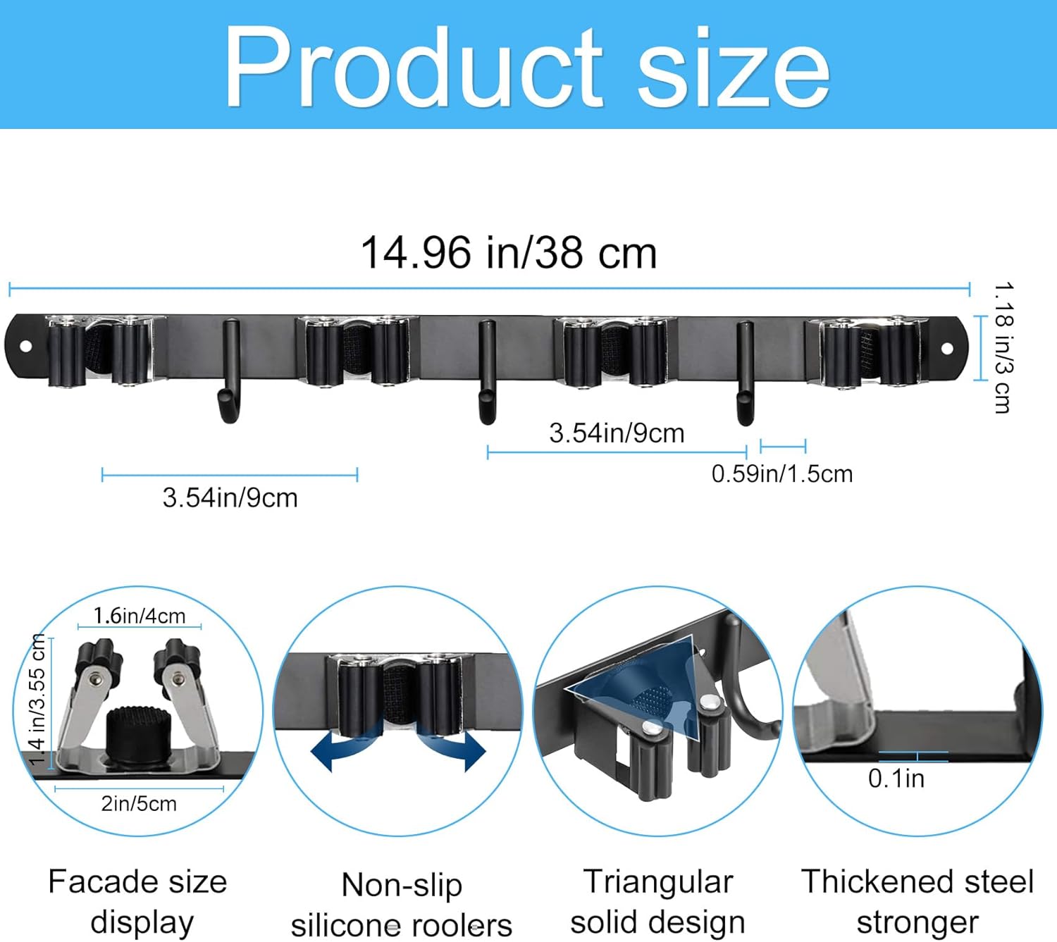 - Multipurpose: In addition to cleaning tools, the rack for hanging brooms mops etc can be used to store a wide range of other items, such as sports equipment, gardening tools, or even office supplies. This makes mop broom holder a versatile storage option for any space, and allows you to get the most out of your investment.