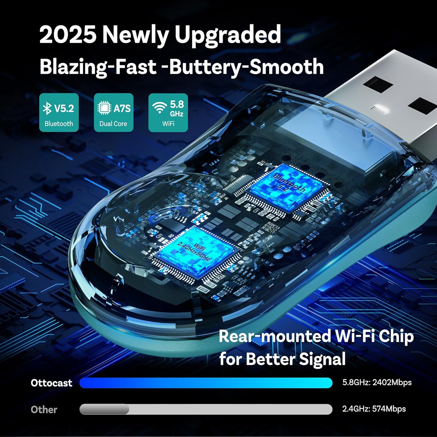 OTTOCAST Wireless Carplay Adapter 2025 for Apple iPhone, Convert Wired to Wireless Car Play for Older Cars Mini USB Design Plug & Play, Multi-User Seamless Connection for iOS 10+/ Android Auto (Green)