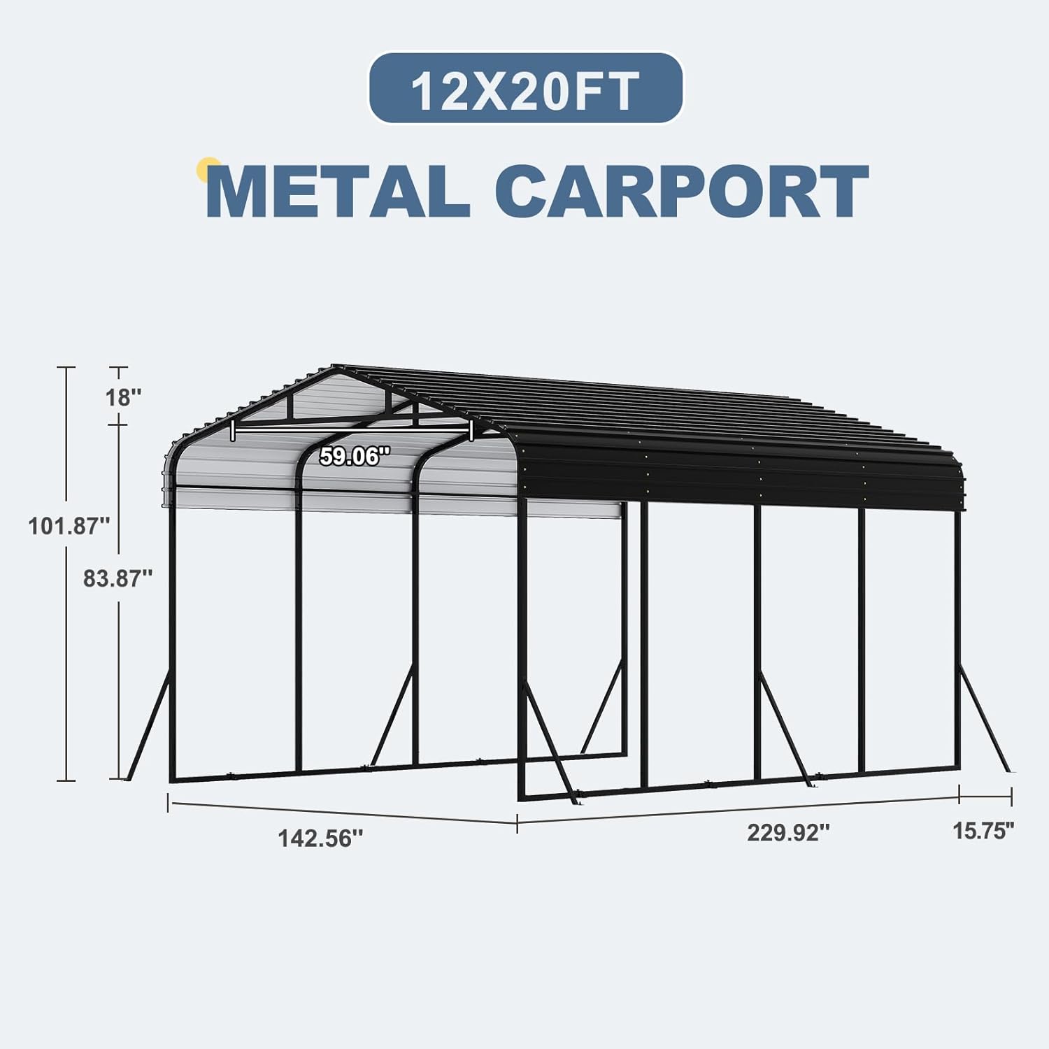 12x20 FT Metal Carport, Garage with Updated Frame Structure, Galvanized Steel Roof and Enhanced Base Canopy, Metal Garage Car Shelter Shade for Car, Boats and Truck