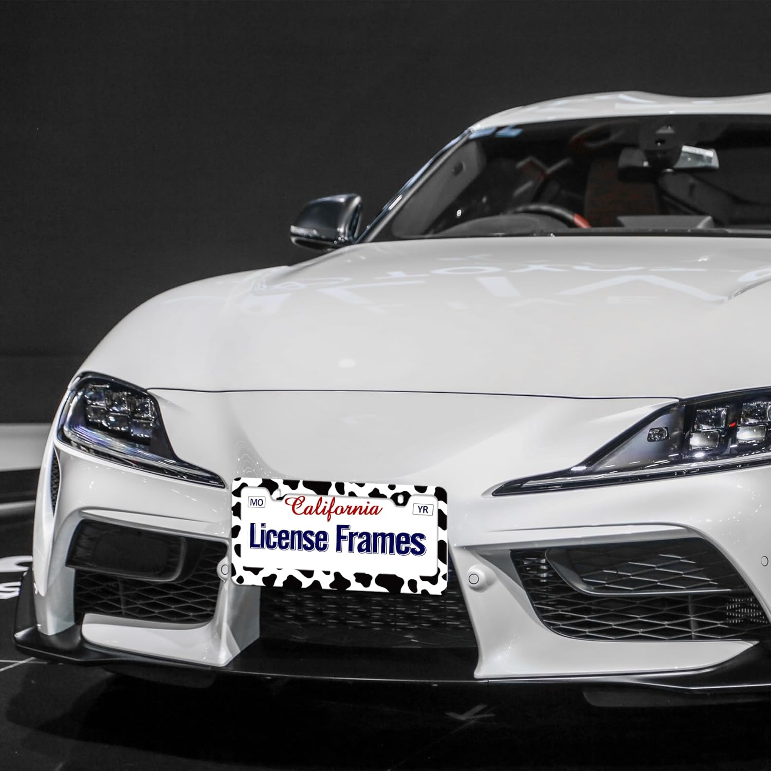 - License Plate frames Cow Print Stuff Set:You will receive a set of 2 license plate frames,All Accessories Needed are Included (4 Screw Caps,4 Screws,4 Washers),Quick and Simple Installation,you don’t need to buy any other hardware or fasteners,Anti-theft caps are also included.