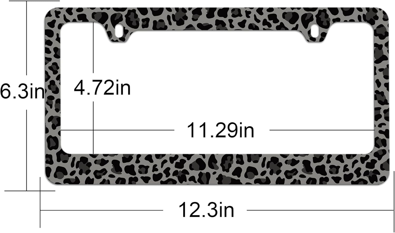 - Standard Size:This 2-hole leopard license plate frame measures 12.3"X 6.3"to fit all standard size U.S.license plates and protects the front and rear panels of the vehicle.The narrow border of the license plate frame does not obscure the status label or cover the state name of the license plate.