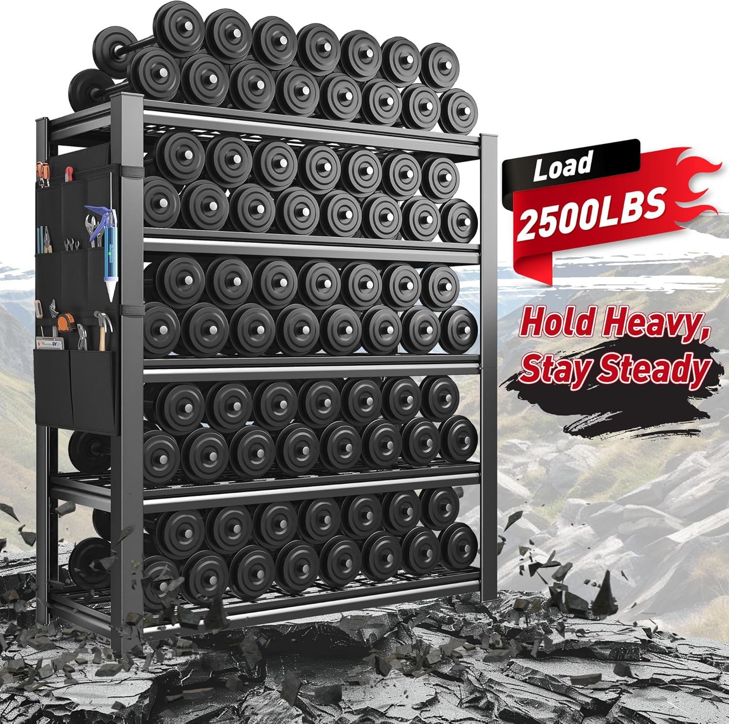 - Special Feature : Adjustable 5 Tier Storage Shelves, Heavy Duty Garage Shelving Load 2500LBS