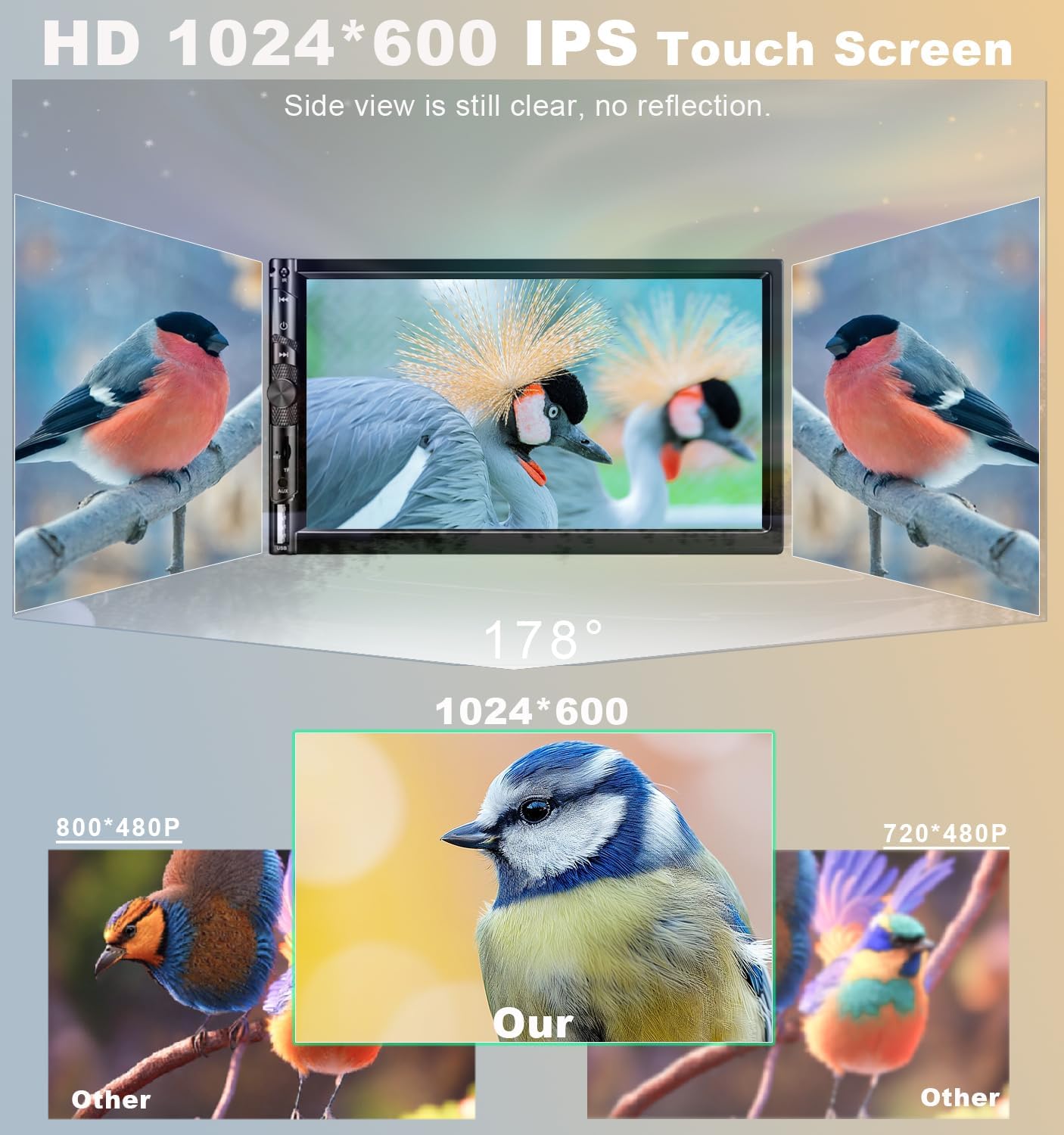 - 7" IPS HD Touchscreen β Enjoy a 1024x600 resolution IPS display with vibrant colors and a capacitive touchscreen for smooth and responsive operation.