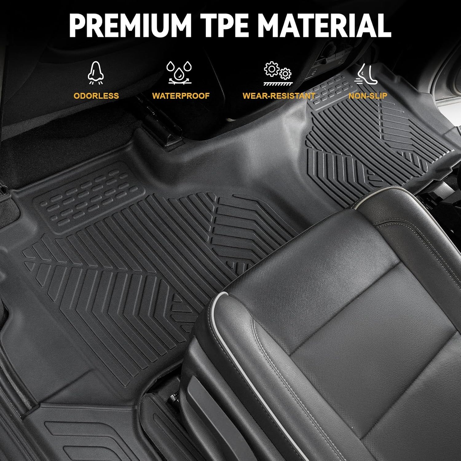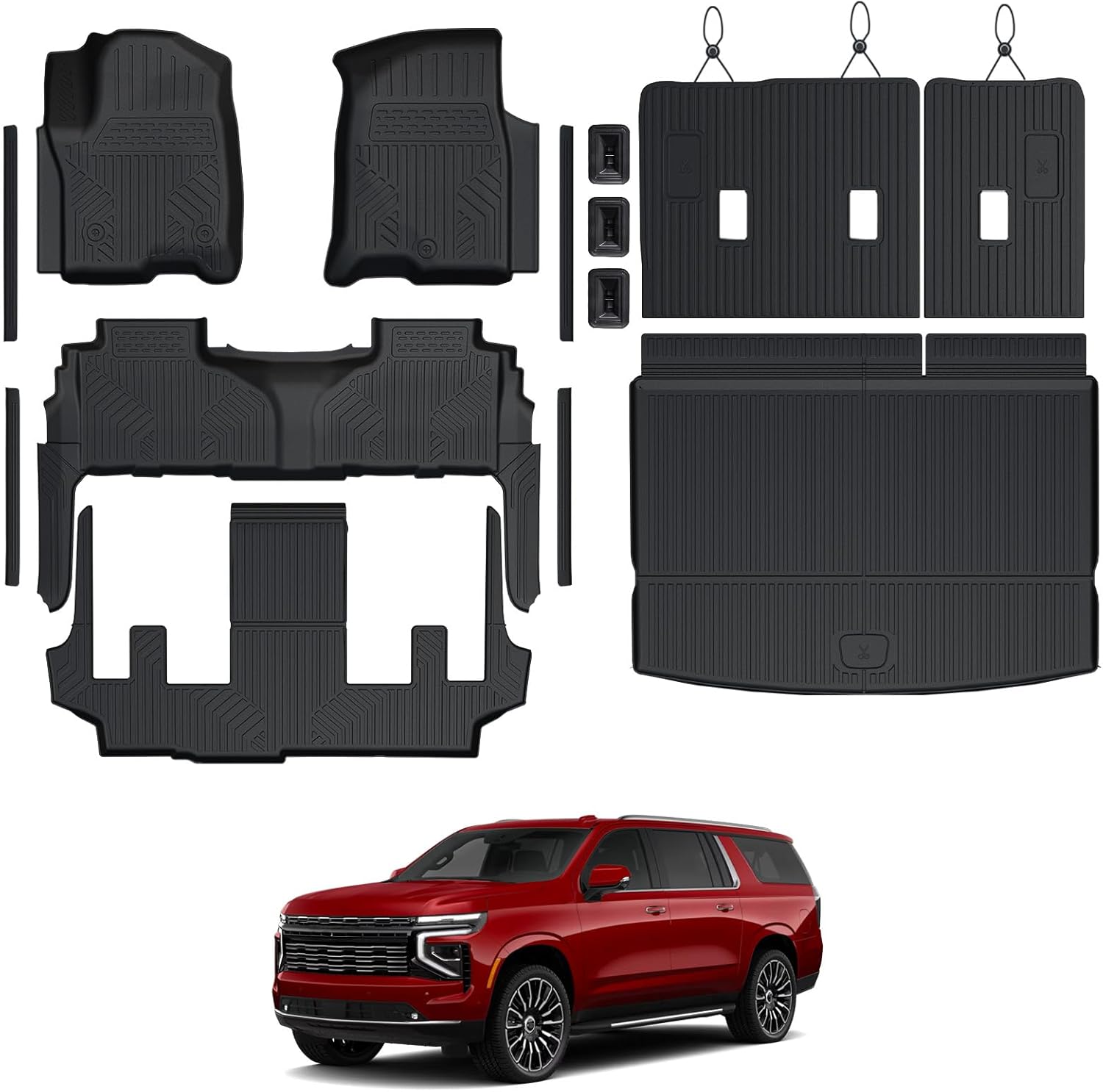 - Custom Fitment: Precisely engineered with 3D laser scanning for 2021 2022 2023 2024 2025 Chevy Suburban / GMC Yukon XL with 7-passenger seating (2nd-row Captain's Chairs). Includes floor mats, cargo liner, 3rd row seat back protectors, 4PCS door sill guards β 30% more components than standard sets