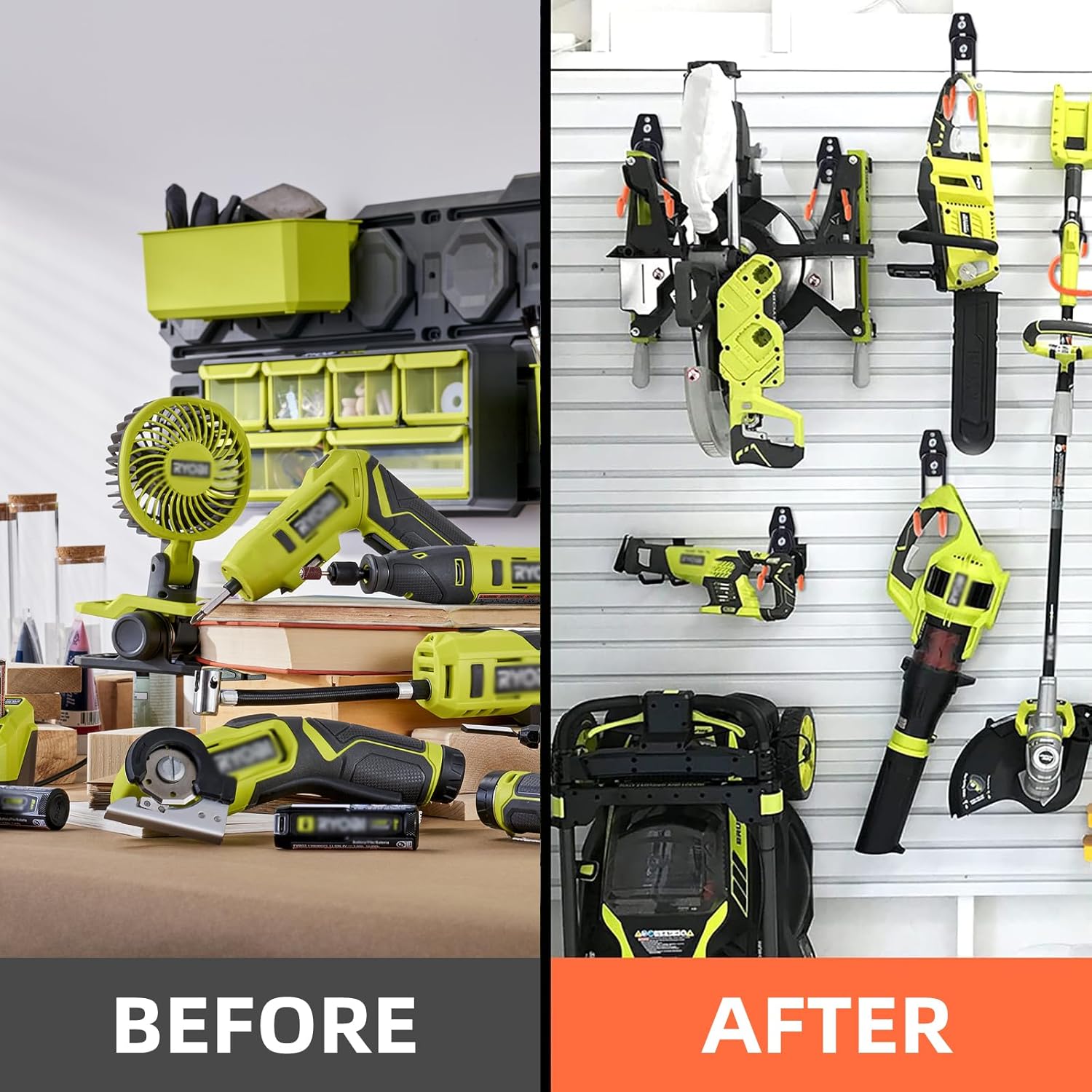 • EASY INSTALLATION:tool hangers for garage wall Featuring a wall-mounted design, these ladder hooks for garage wall can be easily fixed to walls or wooden panels using the included screws. This design saves floor space and eliminates hazards caused by cluttered tool storage