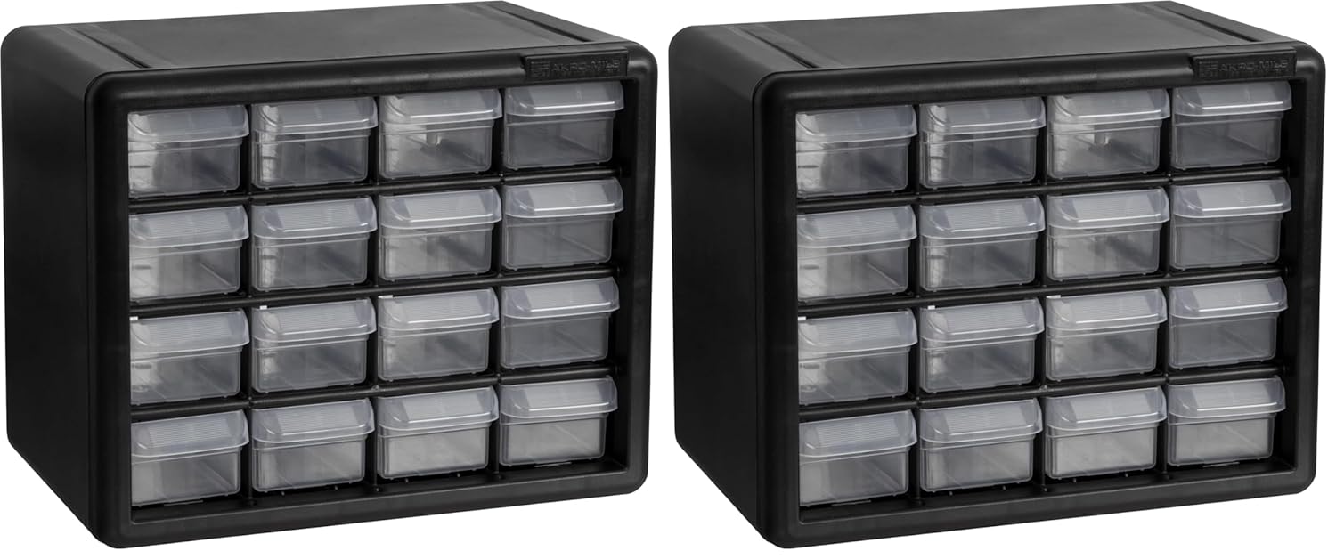 Akro-Mils 16-Drawer Plastic Drawer Storage Cabinet for Garage Organization, Beads, Makeup Organizer, Building Bricks Storage, Teacher Toolbox, 10-1/2-Inch W x 6-1/2-Inch D x 8-1/2-Inch H, 10116 Black
