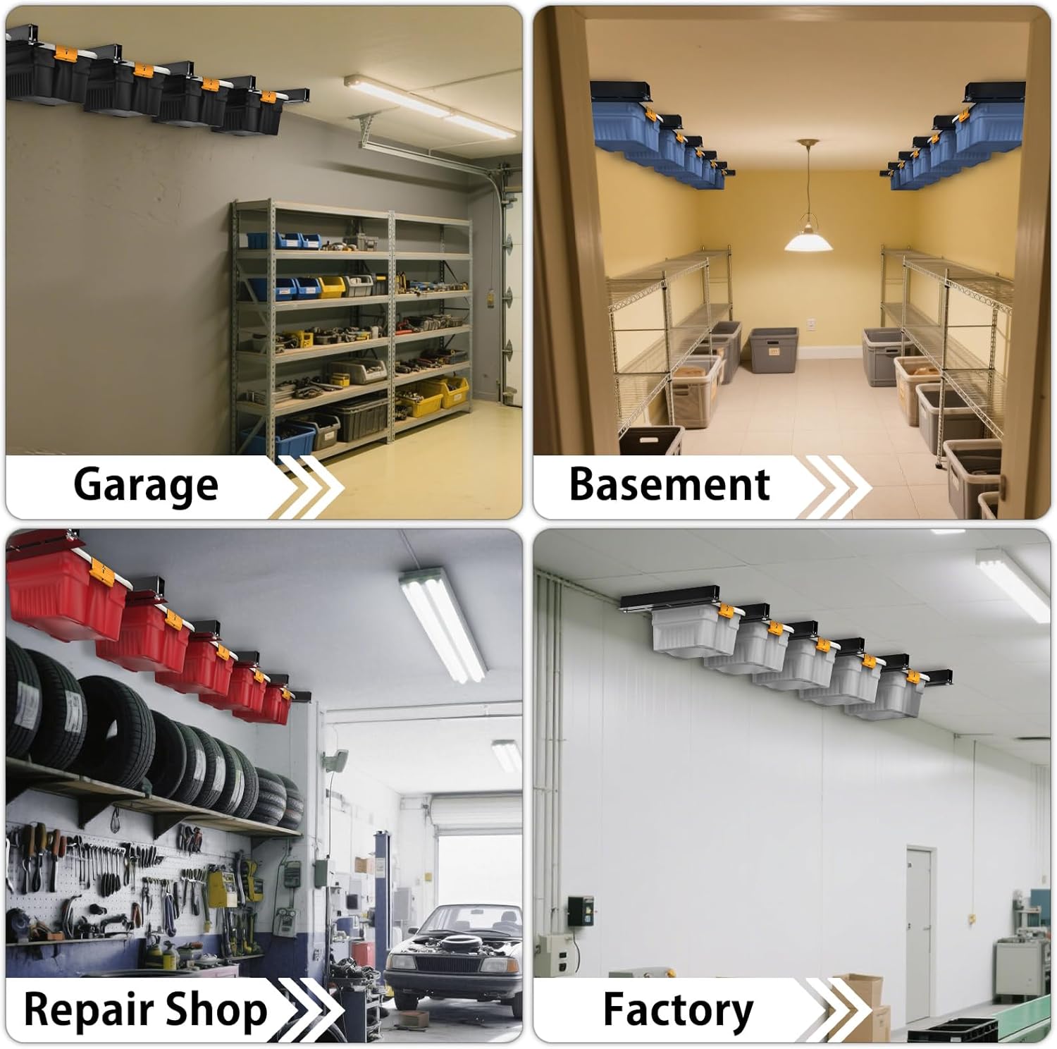 - 【Package Include & Guarantee】6 x Garage Ceiling Storage Racks with mounting accessories ( Bins are not included). If you have any questions, please feel free to contact us, and we will give you a satisfactory solution
