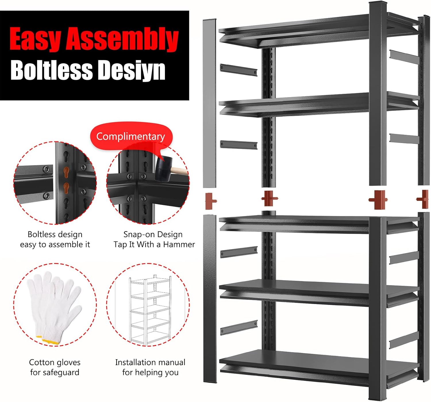 - ăExtremely Sturdy & Durable Garage ShelvingăConstructed from high-strength premium cold-rolled steel with advanced powder-coated technology, this metal garage shelving unit resists rust, oxidation, and wear. The industrial-grade coating not only enhances aesthetics but also boosts durability, making it a heavy-duty shelving solution for long-term use