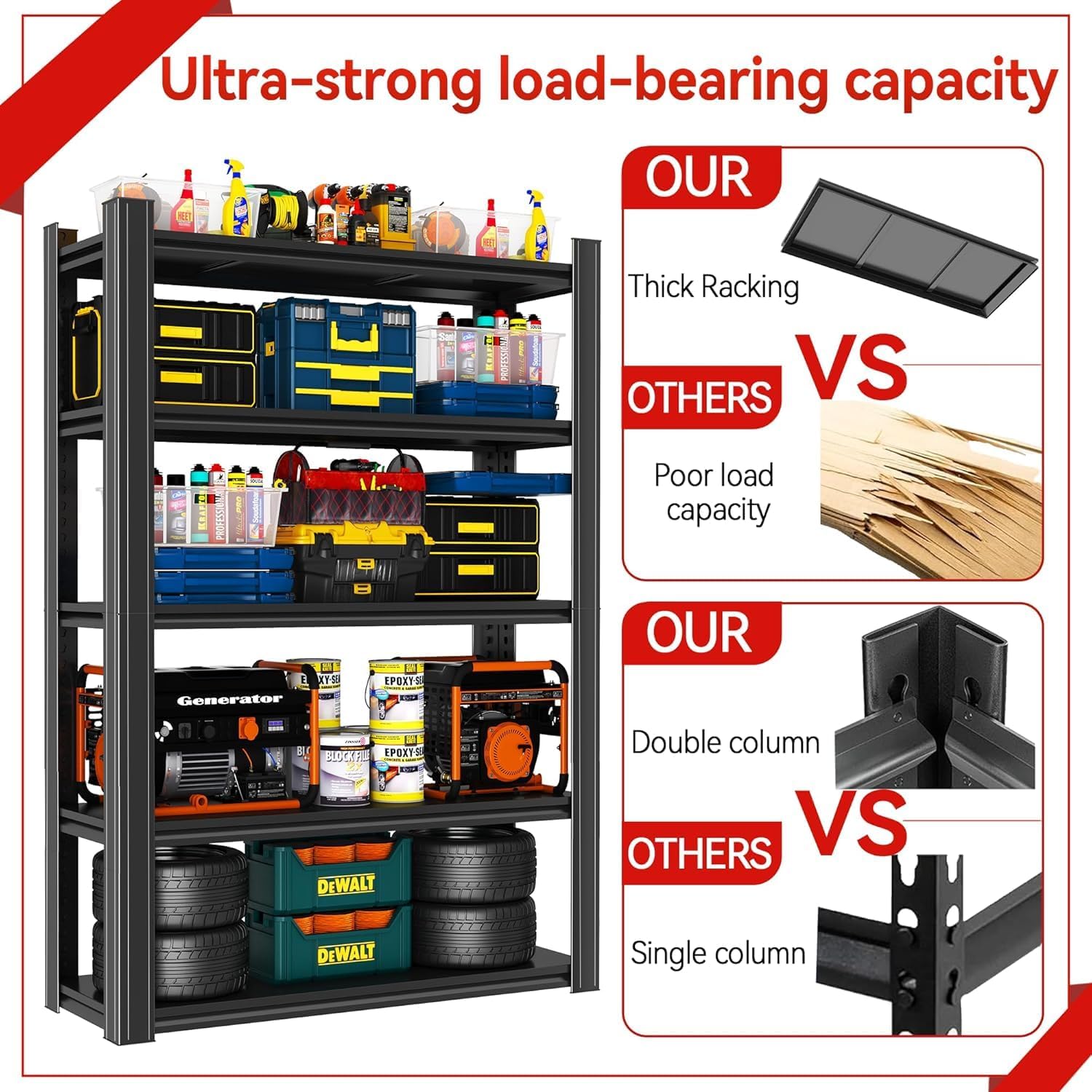 Adjustable 5-Tier Garage Shelving, Heavy Duty Steel Storage Rack, High Load Capacity, Ideal for Garage, Warehouse, or Home Organization (5-Tier 72" H x40 W x 18" D)