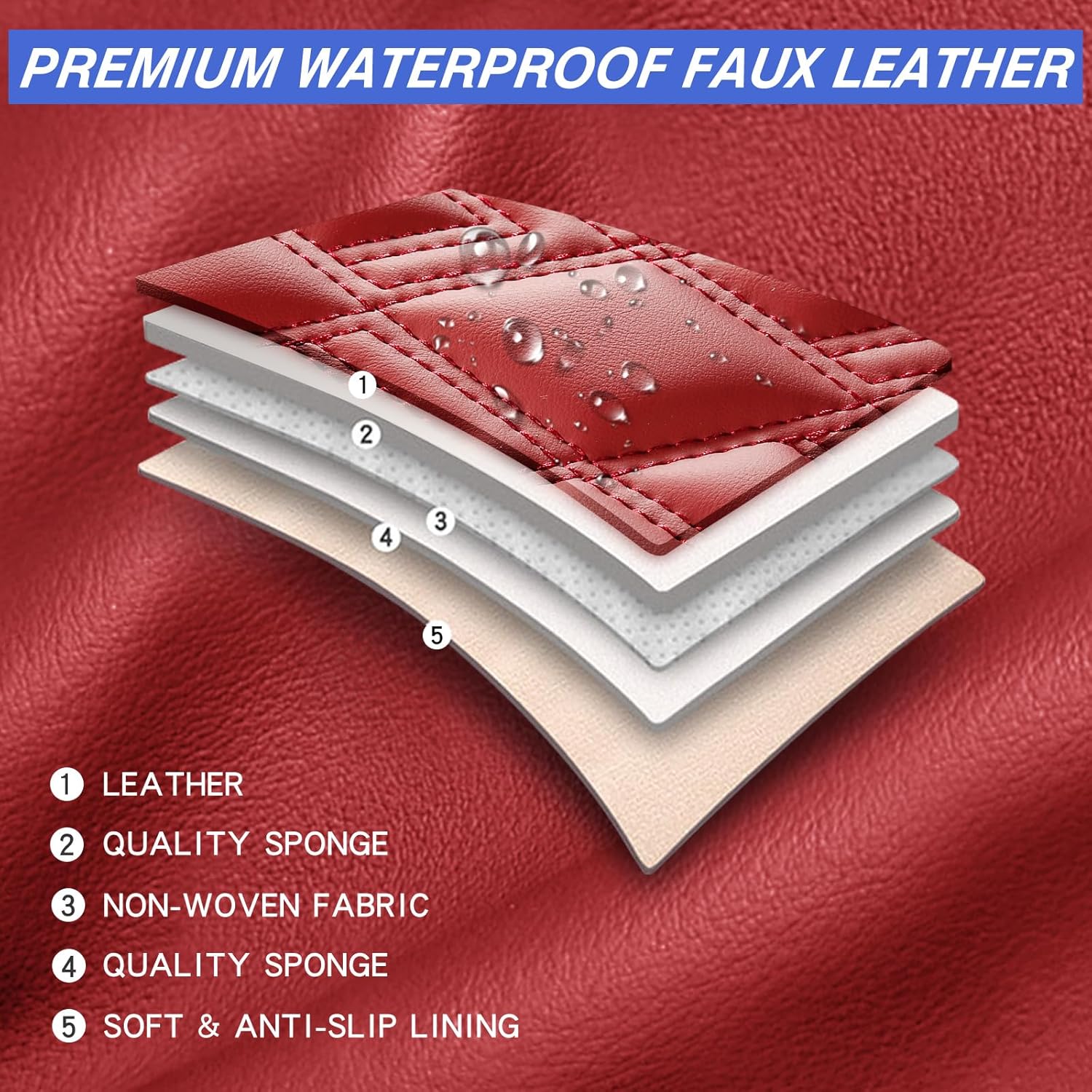 Car Seat Covers Full Set, Leather Seat Covers for Cars, Car Seat Protector Waterproof, Non-Slip Car Interior Covers Fit for Most Cars, SUV, Vans, Trucks,5Seaters,Full Set,Wine-Red